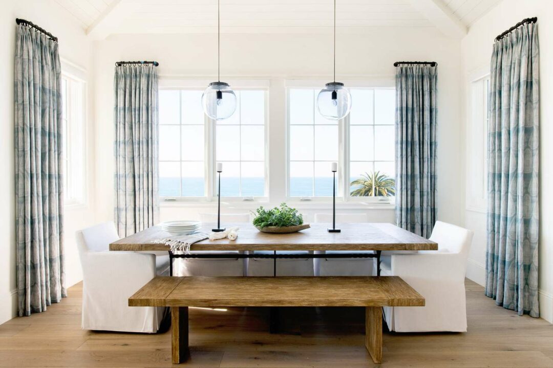 A coastal dining table with bench is a furniture set that is designed to bring a relaxed, beachy, and nautical look to your dining area.