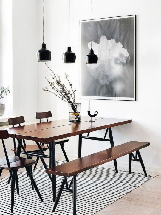 A Scandinavian dining table with bench is a furniture set that is designed to bring a clean, minimalist, and functional look to your dining area.