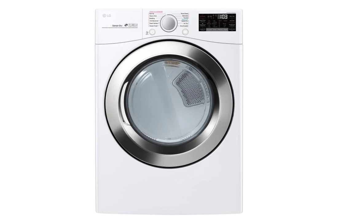 This electric dryer has a large 7.4 cubic foot capacity and uses LG’s TurboSteam technology to quickly remove wrinkles and odors. It’s also ENERGY STAR certified and has an Energy Factor (EF) of 3.81.