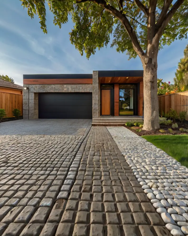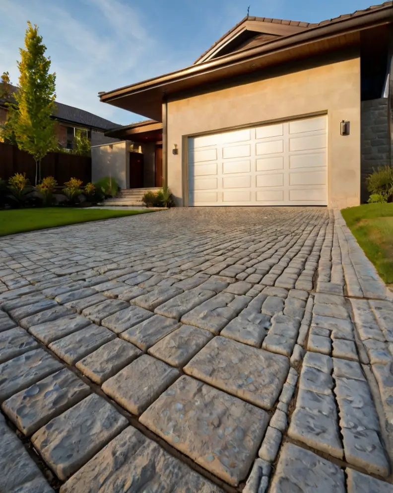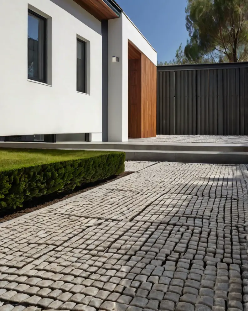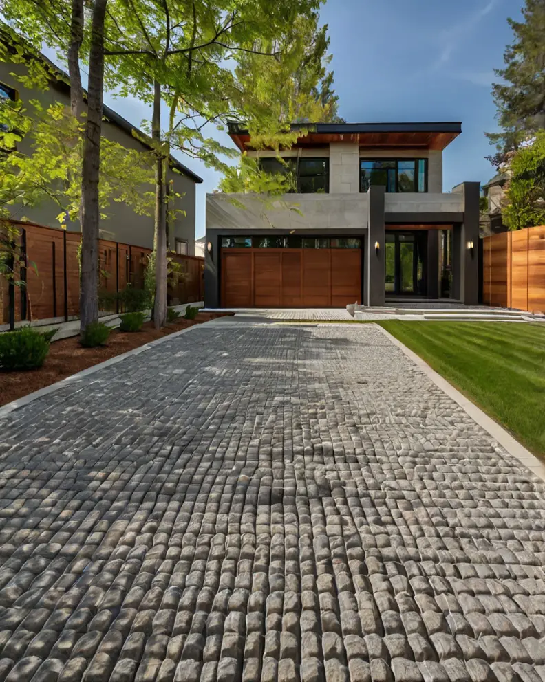 Cobblestone driveways can be installed in various patterns, including herringbone, basketweave, and running bond, allowing for artistic and customized designs. While they provide a rugged and textured surface, they may require more maintenance than some other driveway materials.