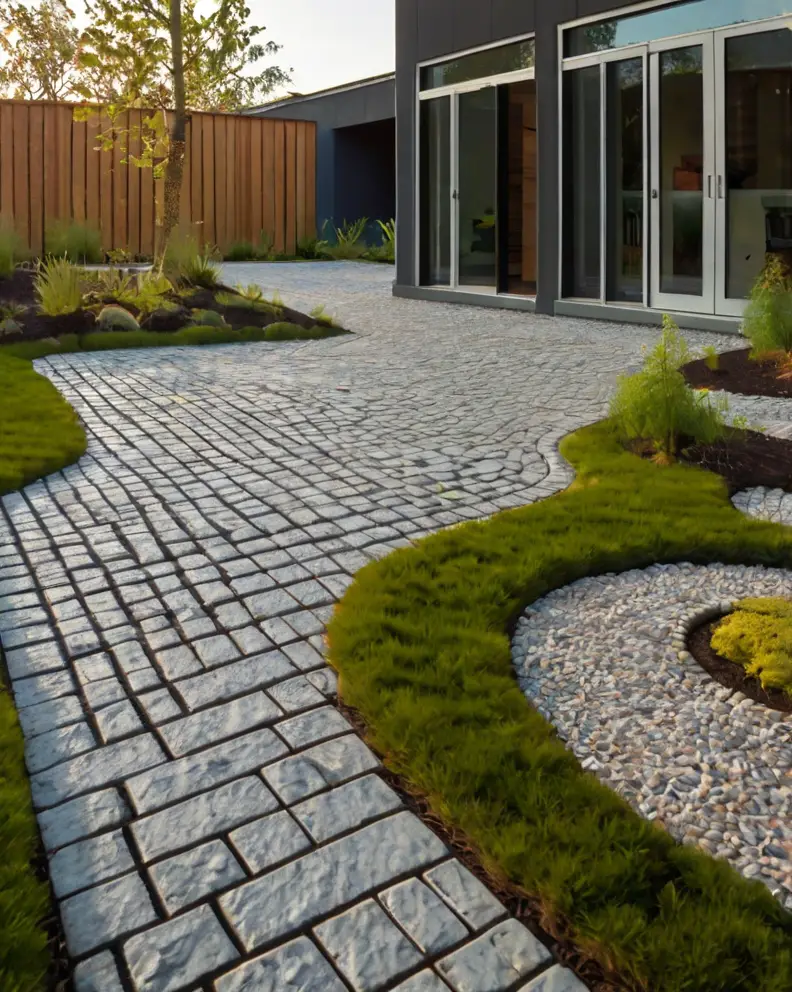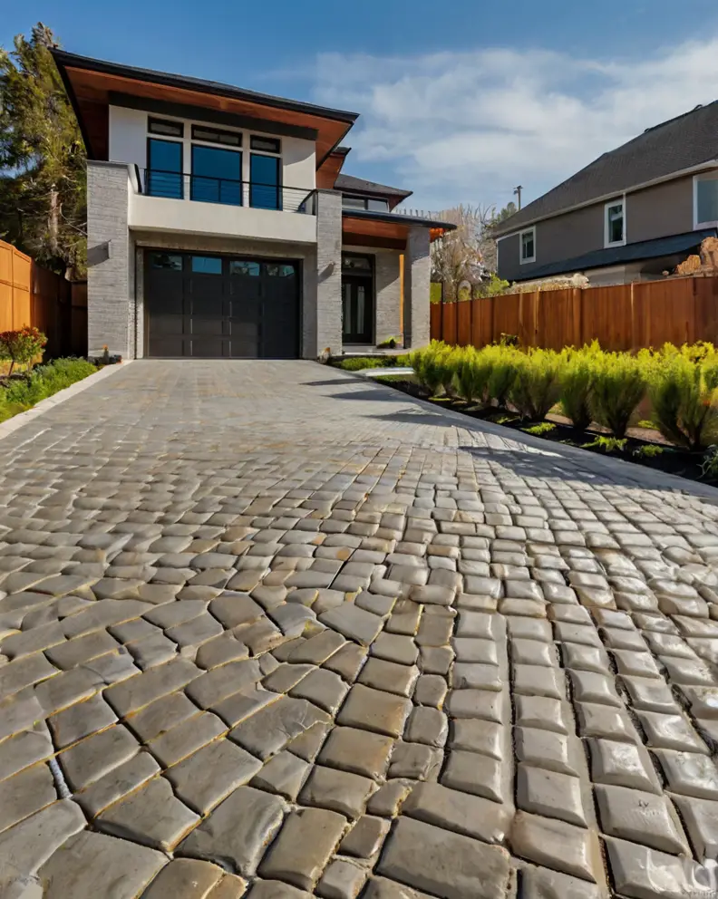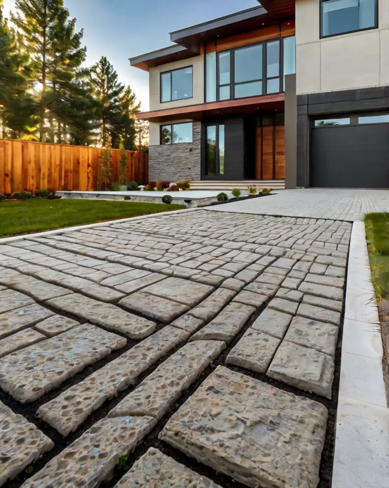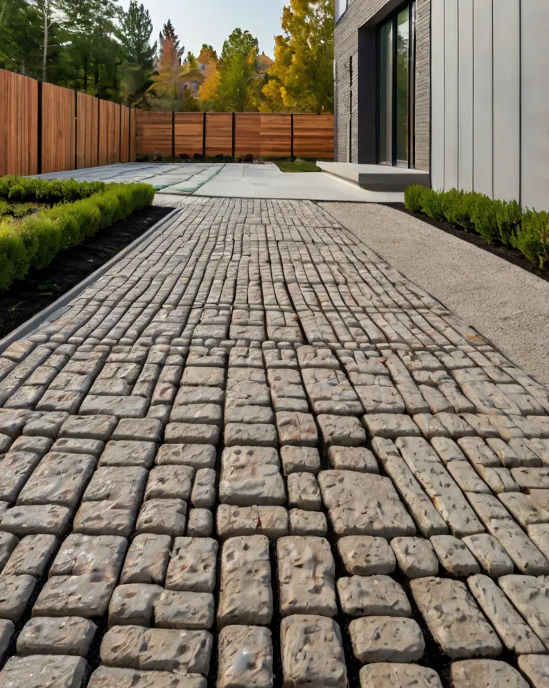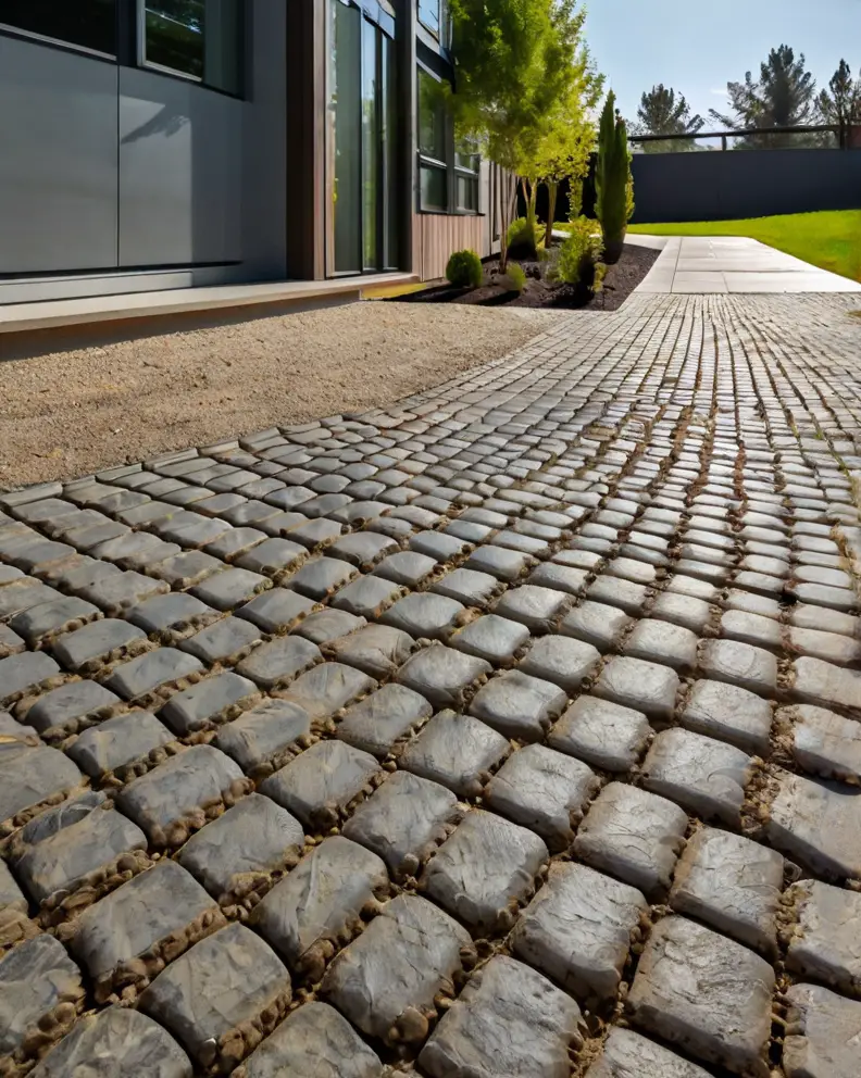 Cobblestone driveways can be installed in various patterns, including herringbone, basketweave, and running bond, allowing for artistic and customized designs. While they provide a rugged and textured surface, they may require more maintenance than some other driveway materials.