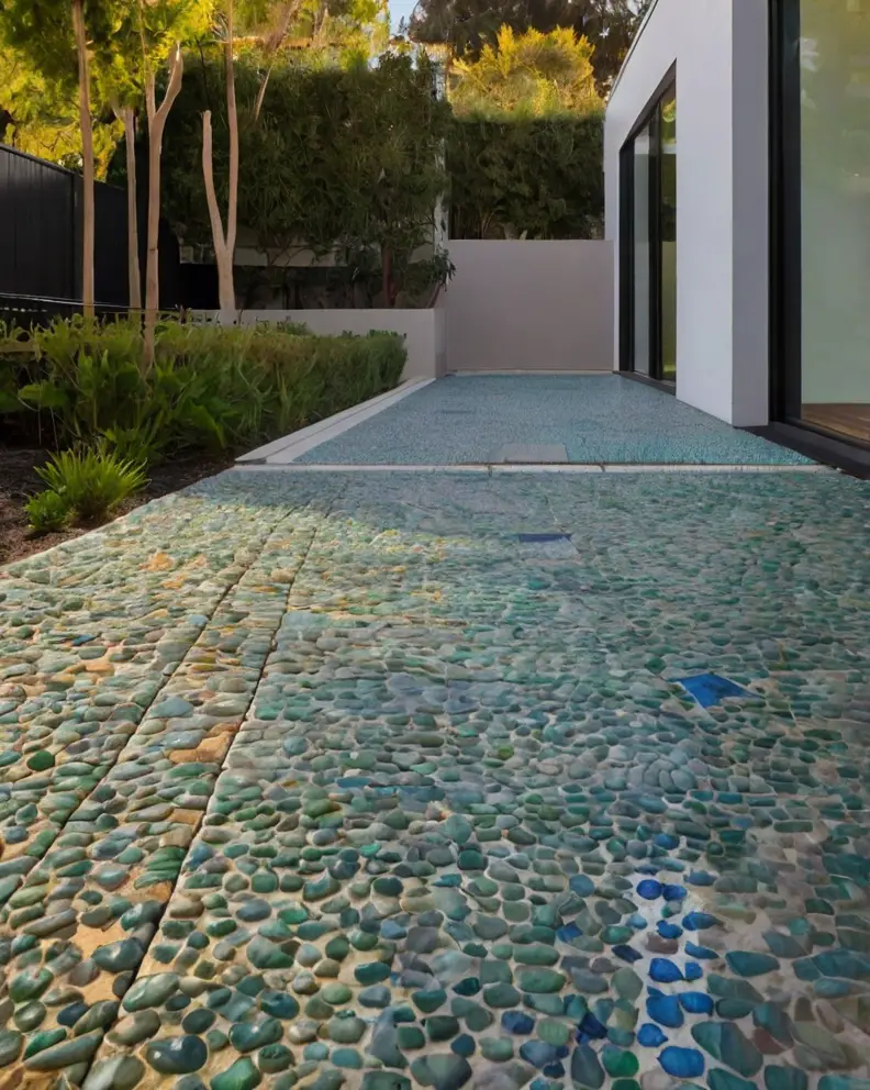 One of the standout features of recycled glass pavers is their aesthetic appeal. They come in a range of vibrant colors and can be used to create eye-catching designs, adding a pop of color and texture to outdoor spaces like patios, walkways, and even pool decks.