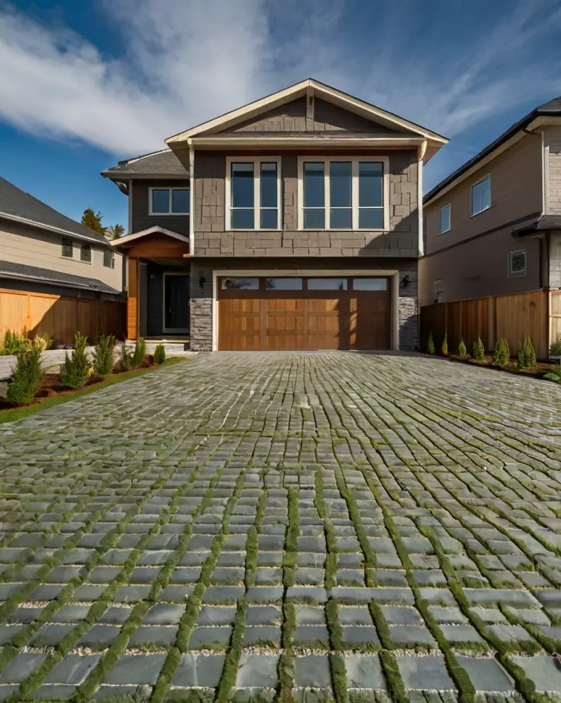 This not only helps manage water effectively but also enhances the aesthetics of the outdoor space, providing a lush, green appearance while maintaining load-bearing capacity for vehicles.