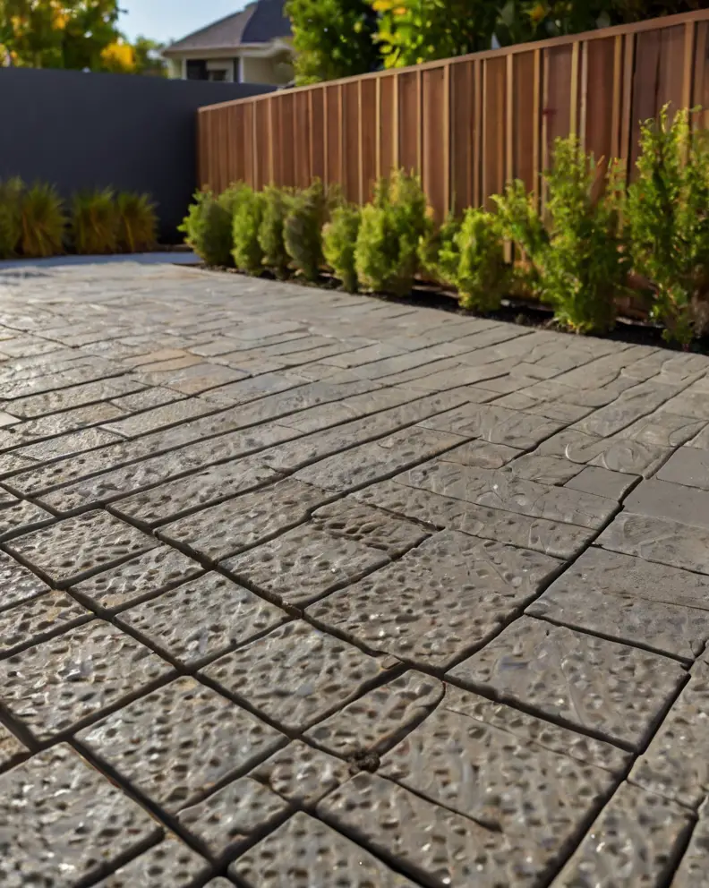 Stamped concrete with gaps is a versatile choice, allowing for a wide range of patterns and textures, including cobblestone, slate, or even wood grain. It provides a balance between style and practicality, making it suitable for homeowners and landscapers looking for an elegant, cost-effective, and low-maintenance solution that combines the beauty of natural materials with efficient water management.