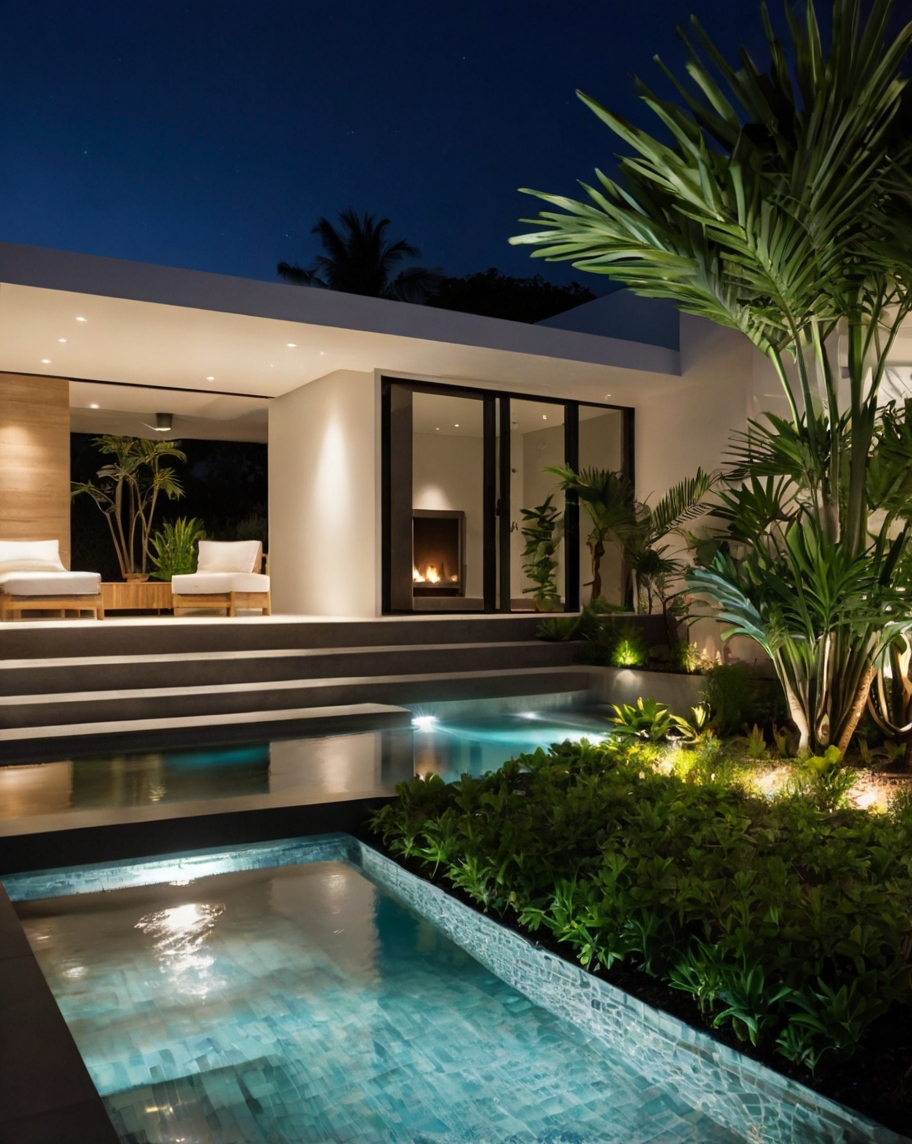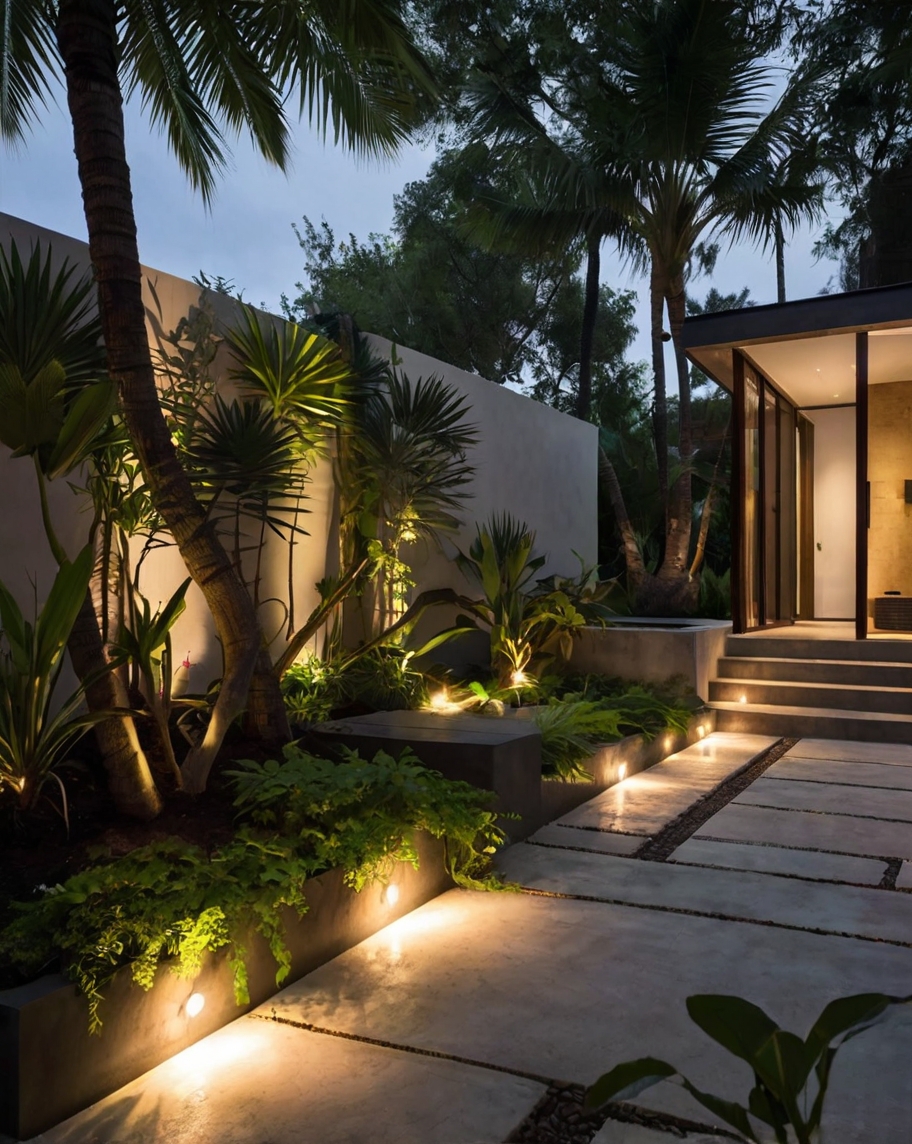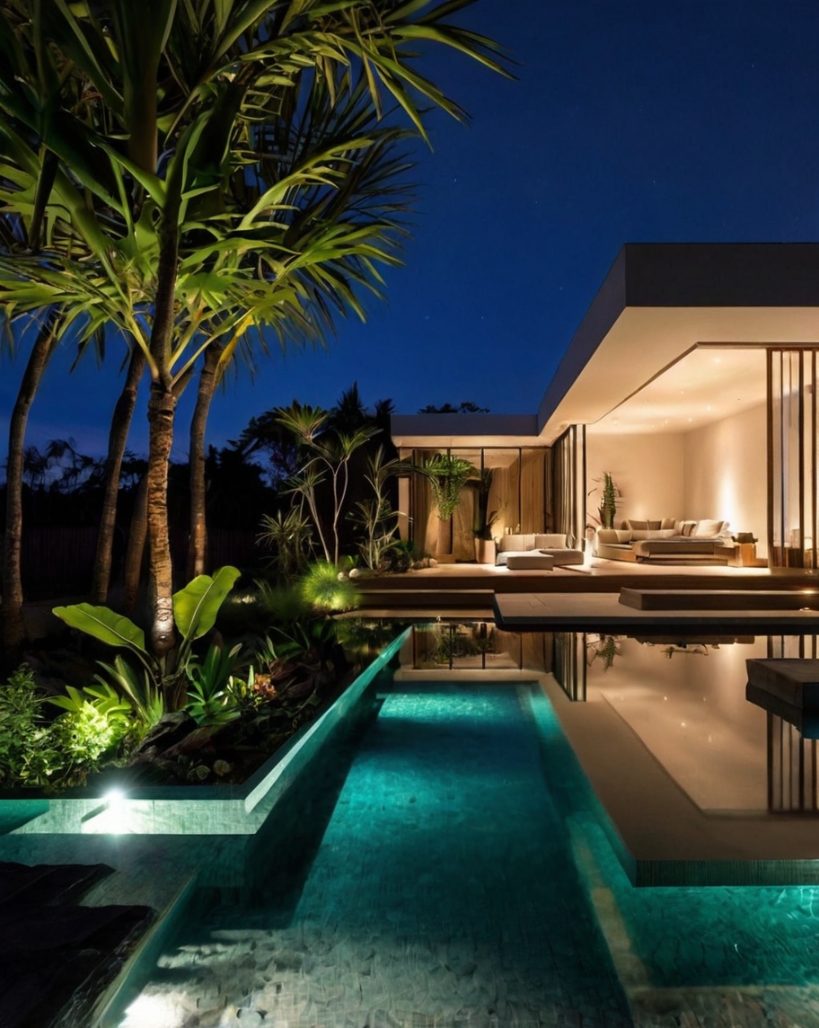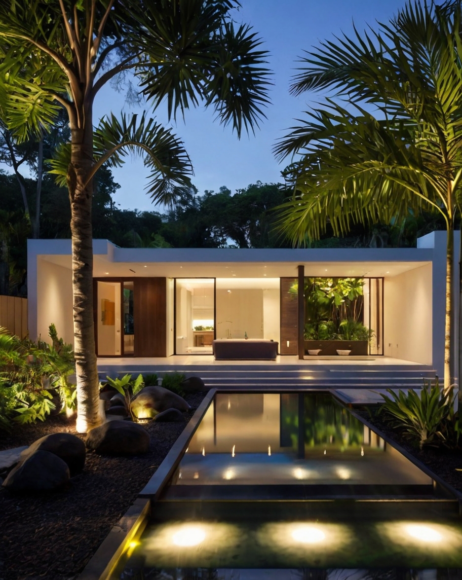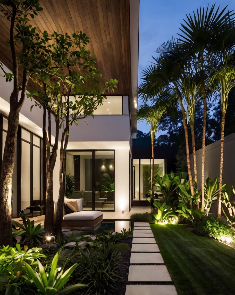 Tropical Backyard Landscape Ideas – Proper lighting can transform your backyard into a magical retreat at night. Use soft, ambient lighting to highlight key features and create a relaxing atmosphere. Consider: