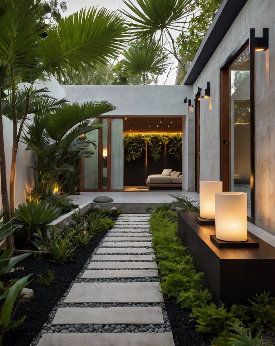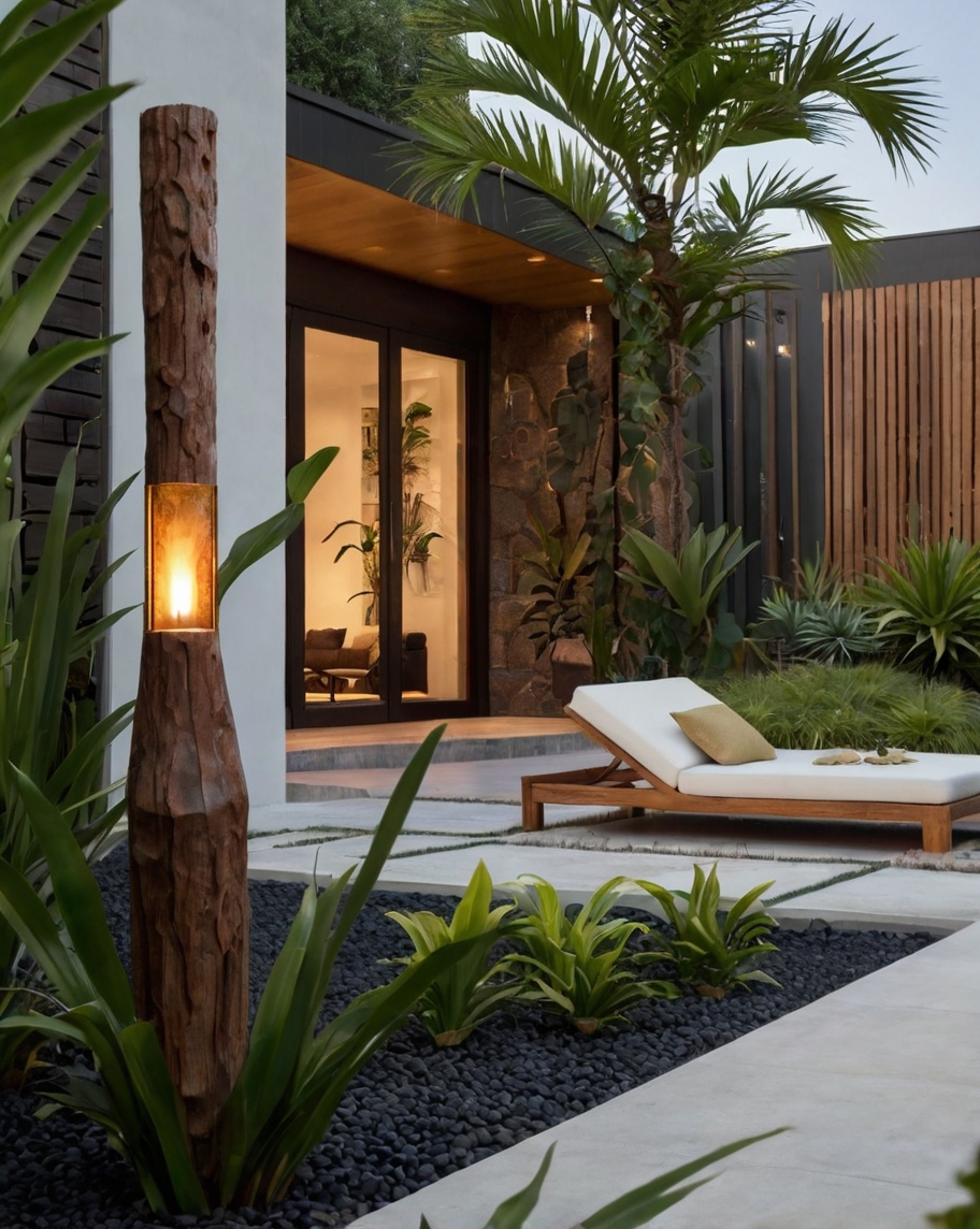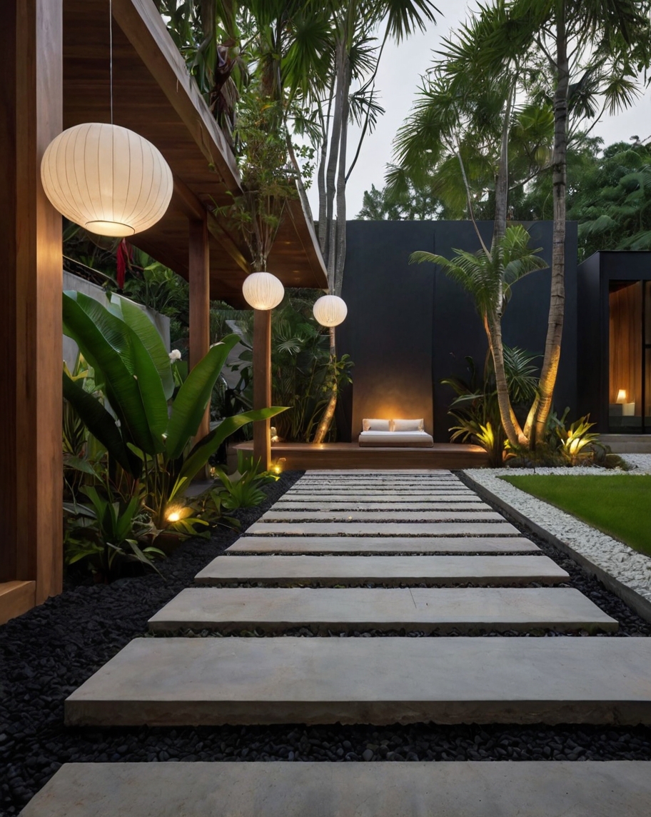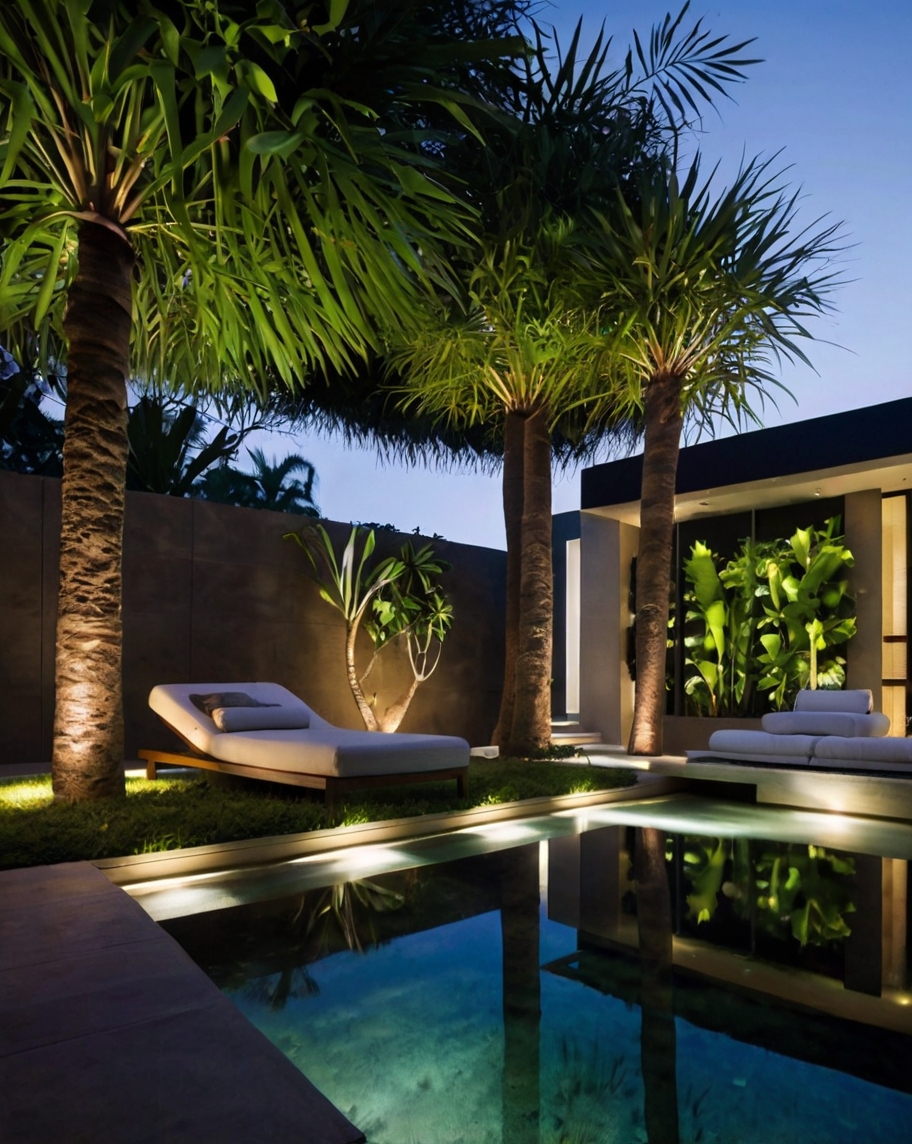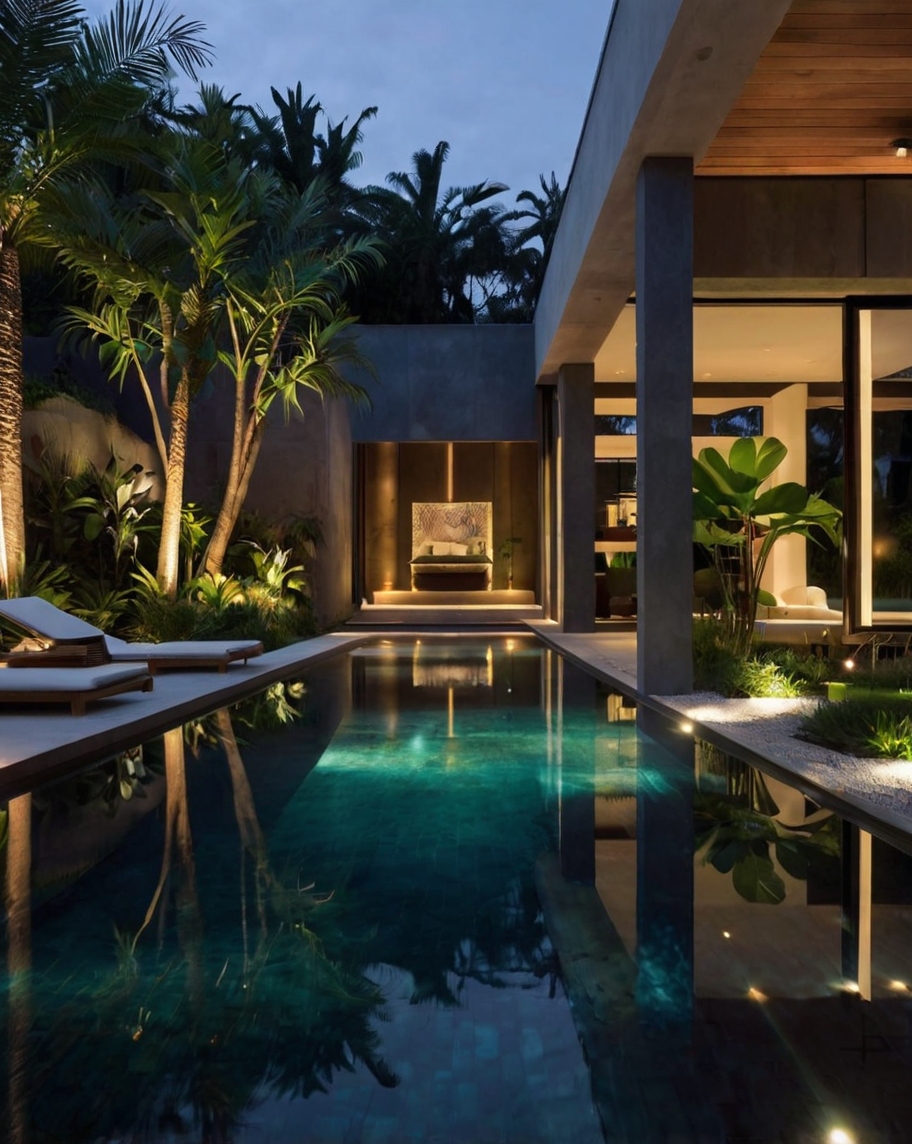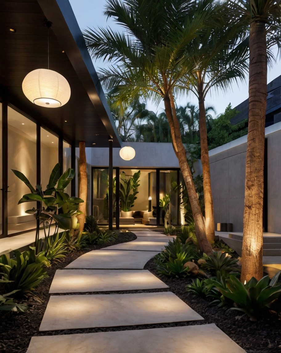 Tropical Backyard Landscape Ideas – Proper lighting can transform your backyard into a magical retreat at night. Use soft, ambient lighting to highlight key features and create a relaxing atmosphere. Consider: