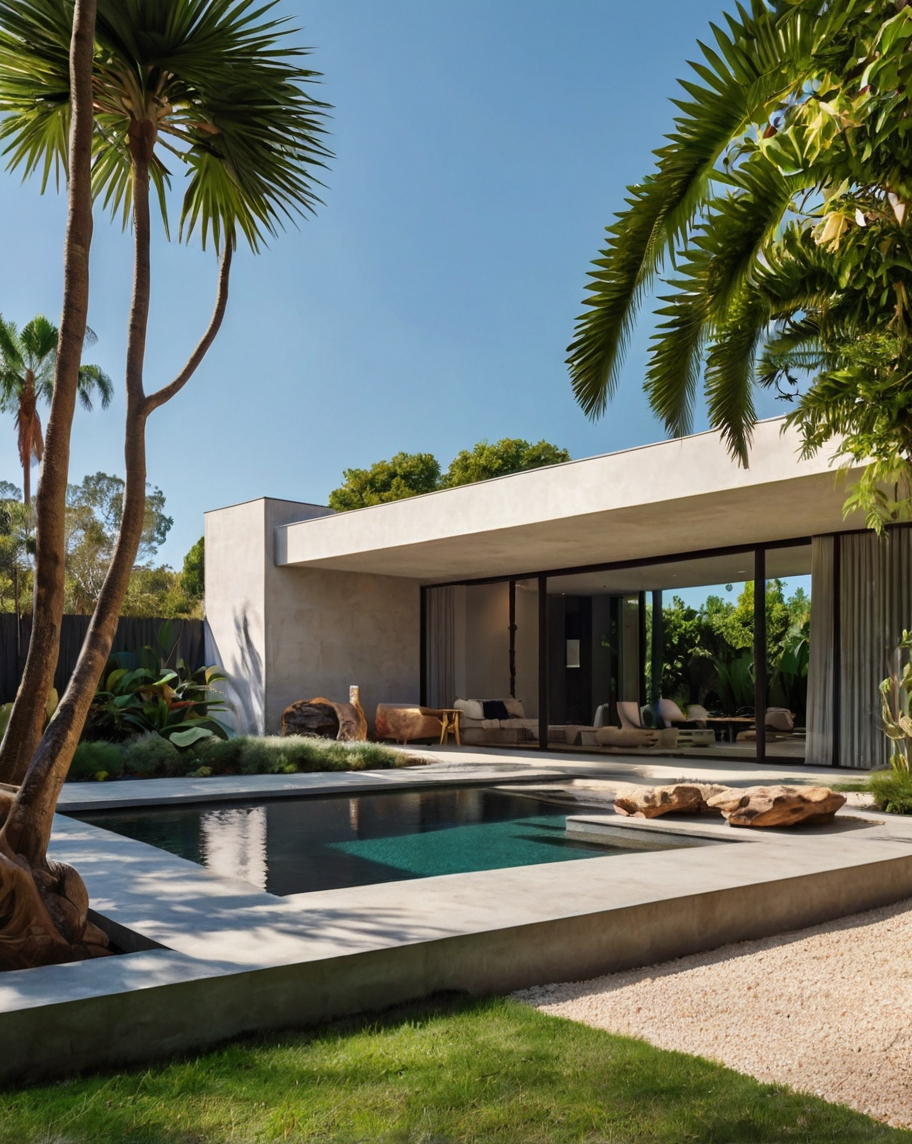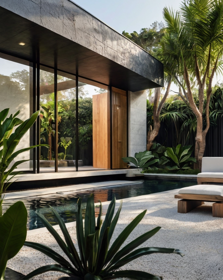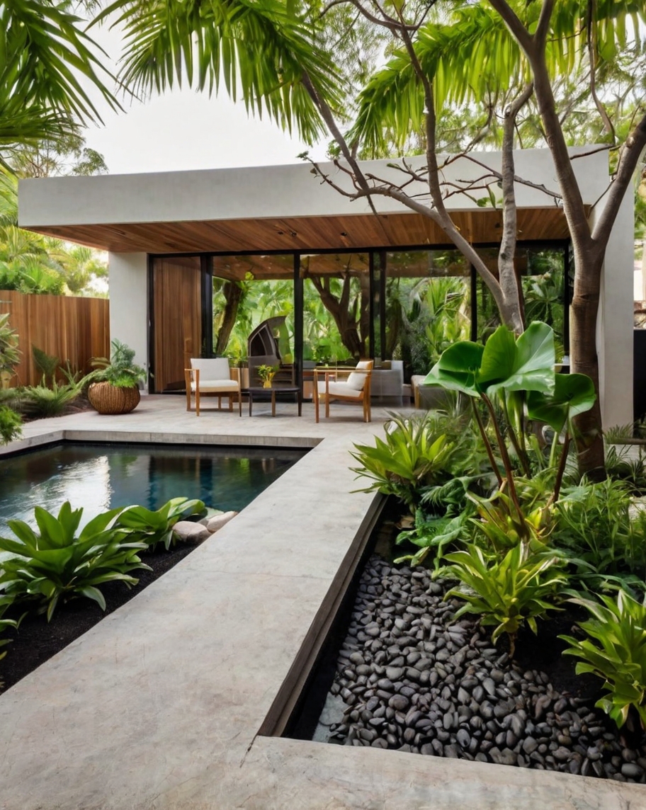 Pools: If space and budget allow, a pool with a natural, lagoon-like design can be the centerpiece of your tropical oasis.