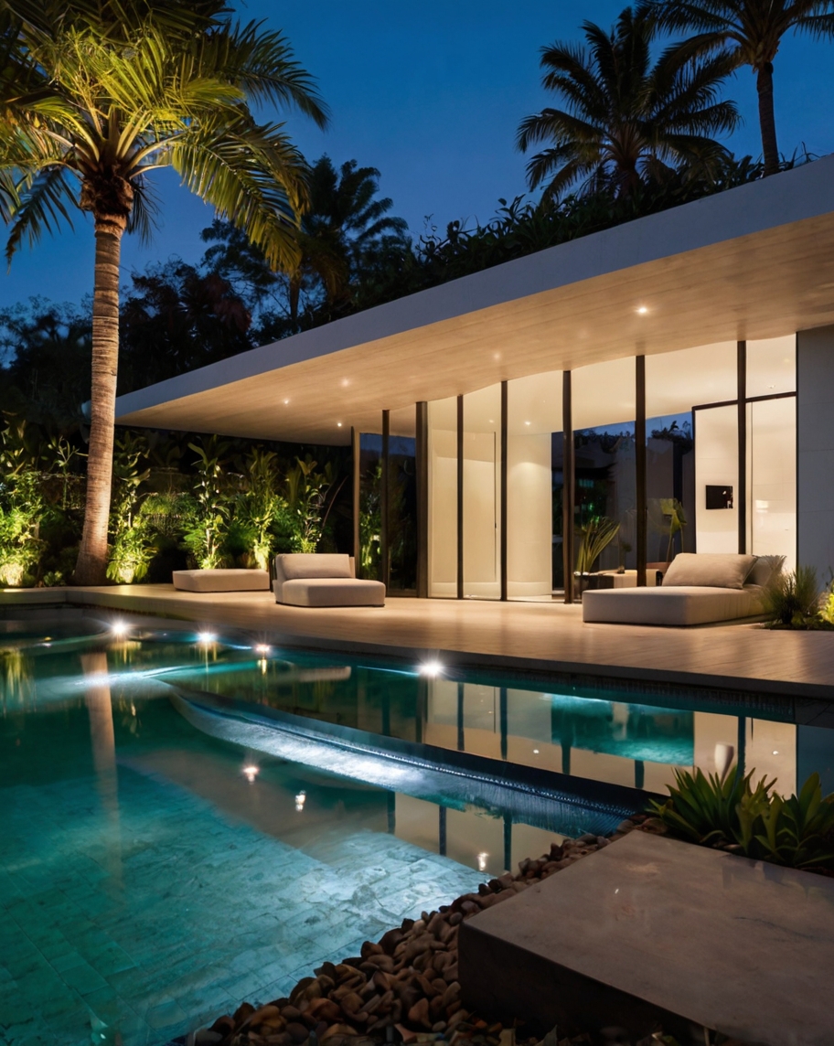 Underwater Lights: In ponds or pools to create a stunning nighttime effect.