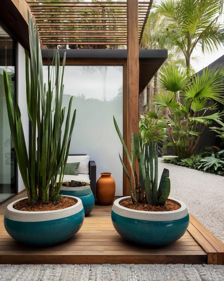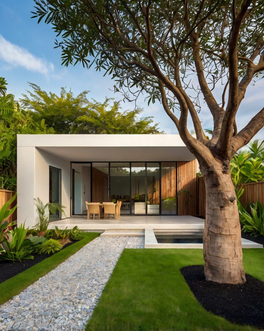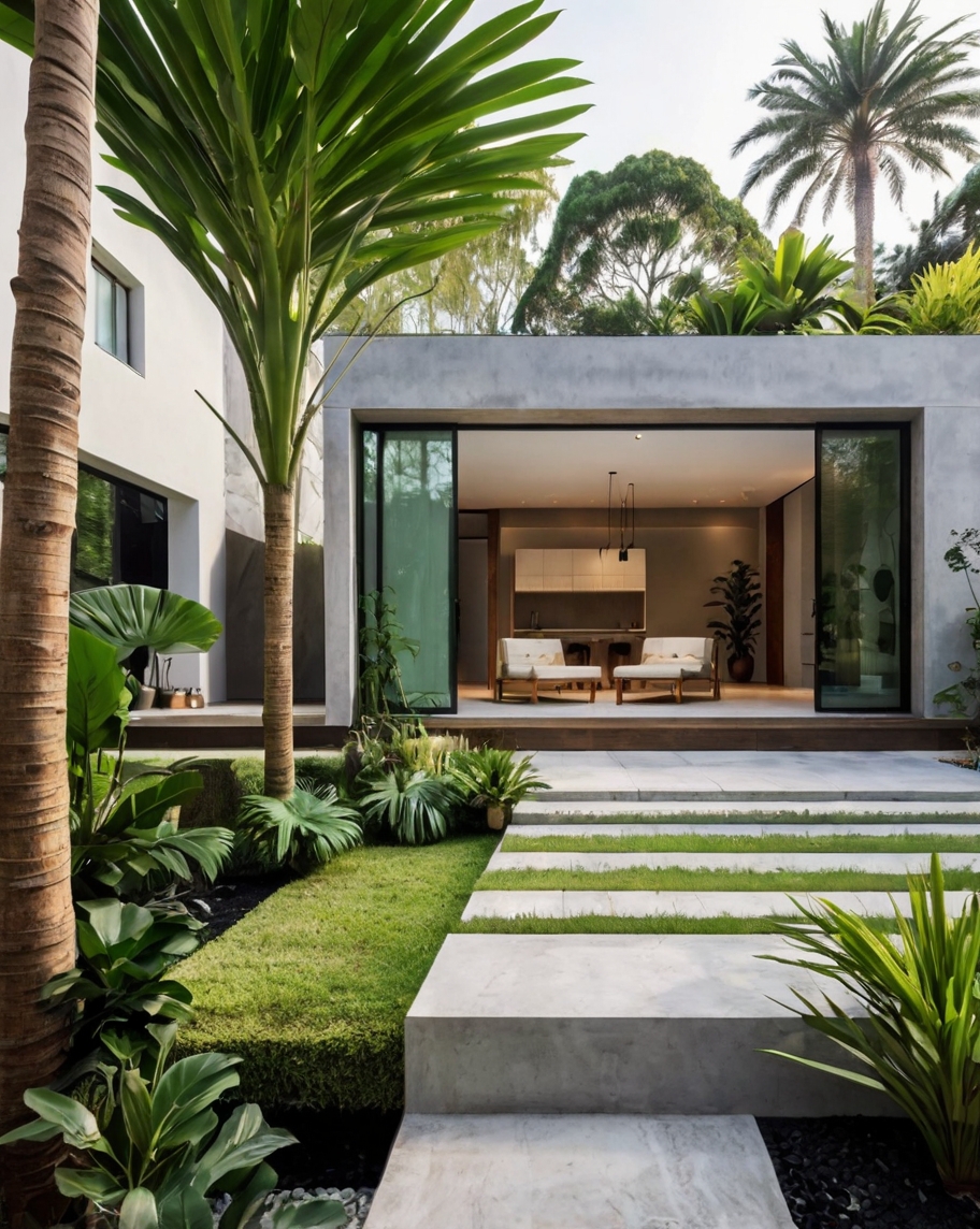The foundation of any tropical landscape is abundant, lush greenery. Opt for plants that are known for their tropical appearance, such as: