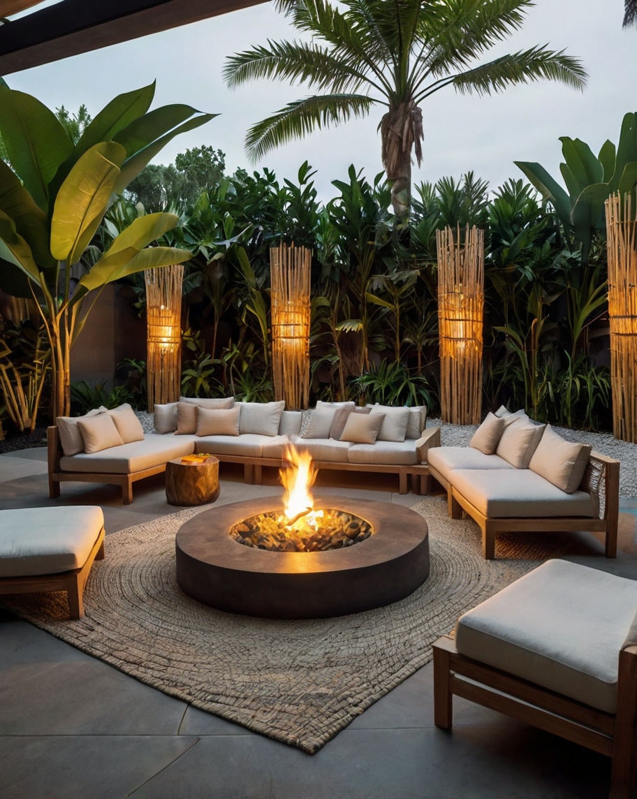 Create inviting outdoor living spaces that allow you to enjoy your tropical garden. Comfortable seating, hammocks, and shaded areas are essential. Some ideas include: