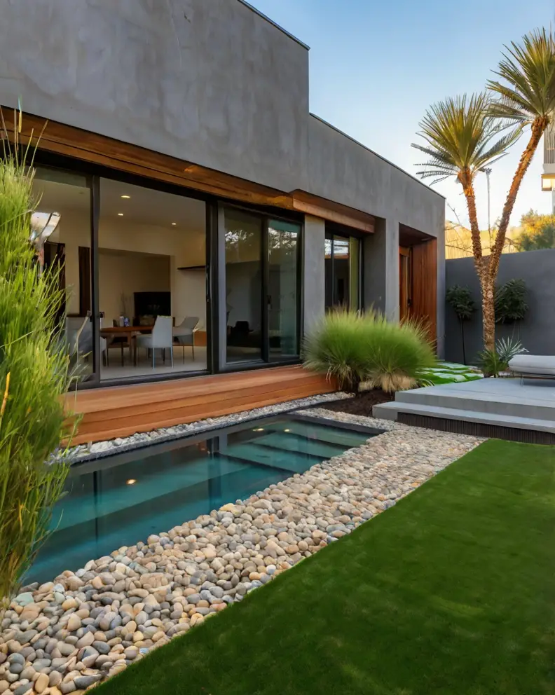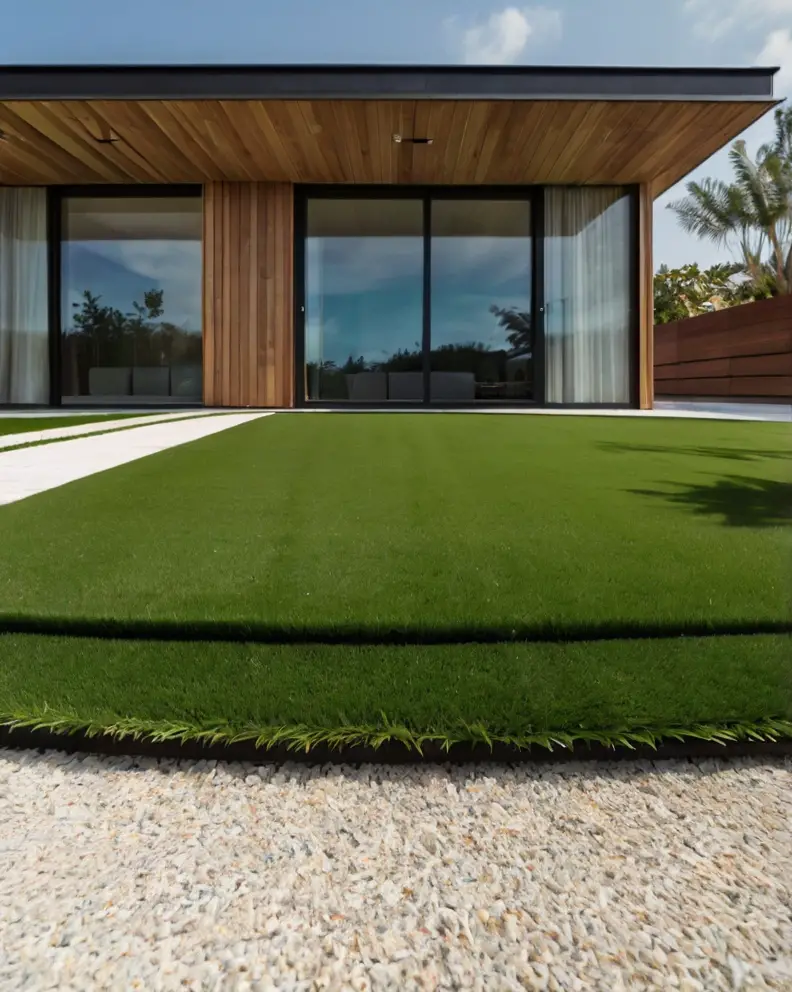 Pair artificial grass with drought-tolerant plants and gravel for a front yard that’s both water-wise and visually appealing.