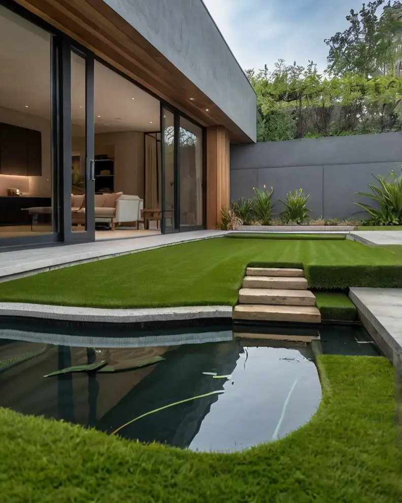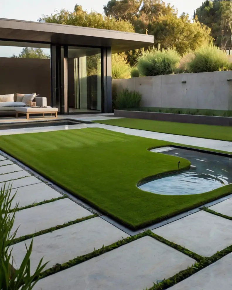 Artificial grass pairs beautifully with water features like fountains, ponds, or even small streams.