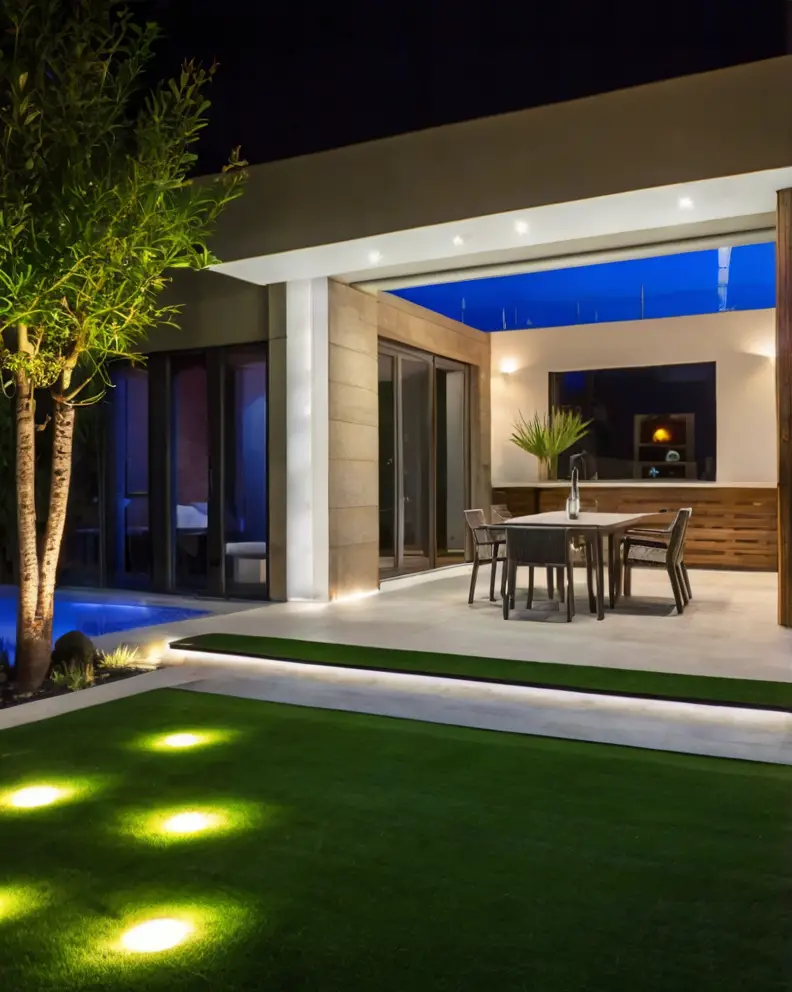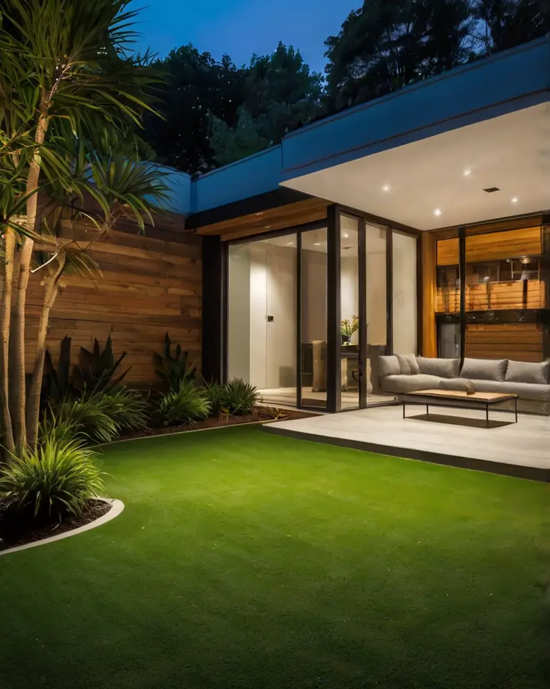 Enhance the beauty of your artificial grass yard with strategic lighting. Install pathway lights, spotlights, or even LED strips along the edges of the turf to create a stunning night-time display – Artificial Grass Ideas.