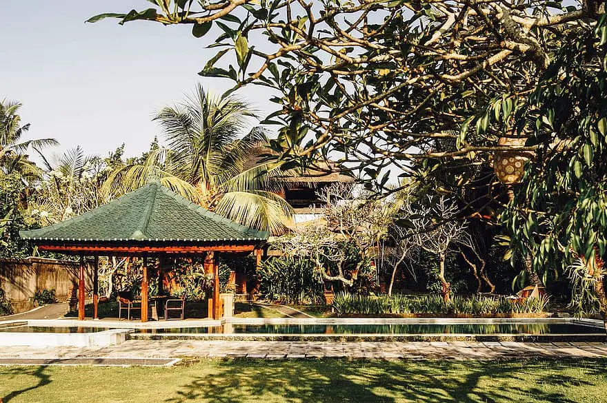 gazebo deck shade patio trees relaxation outdoors backyard pergola