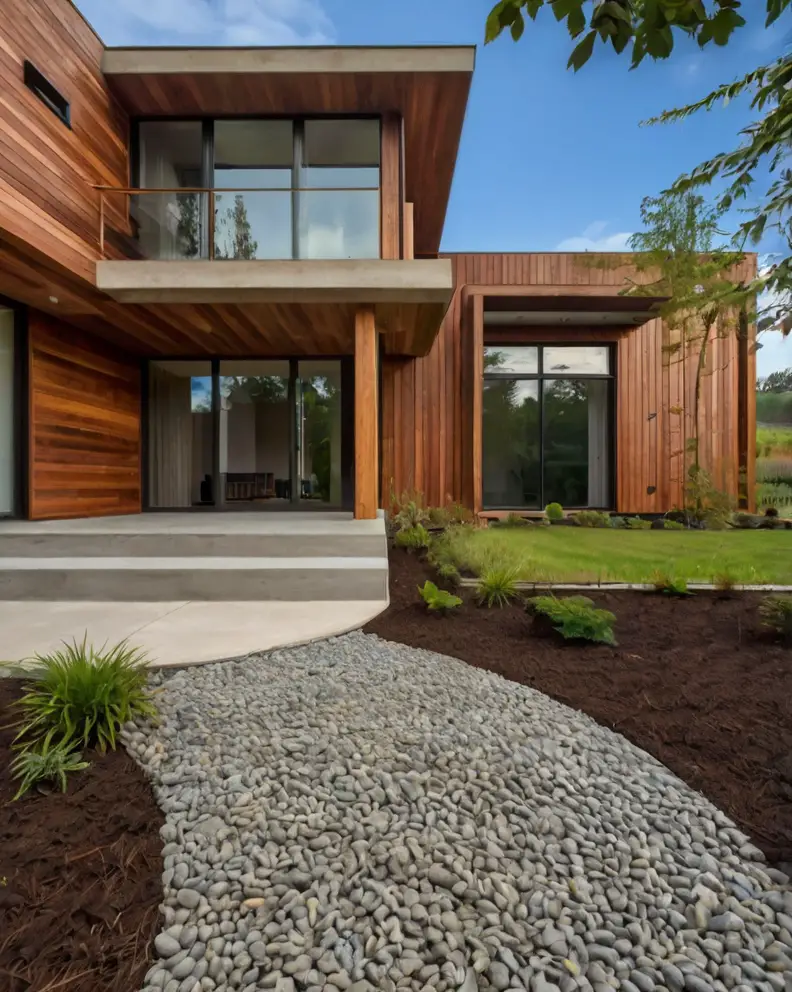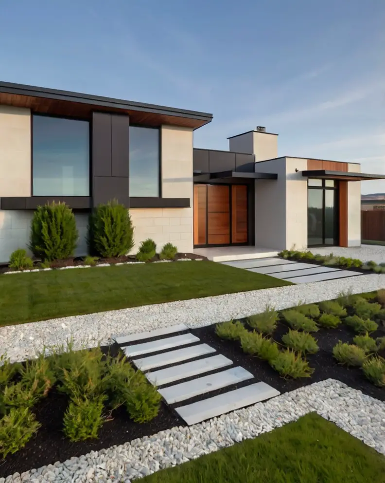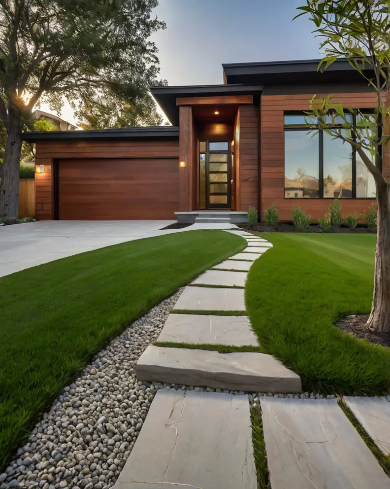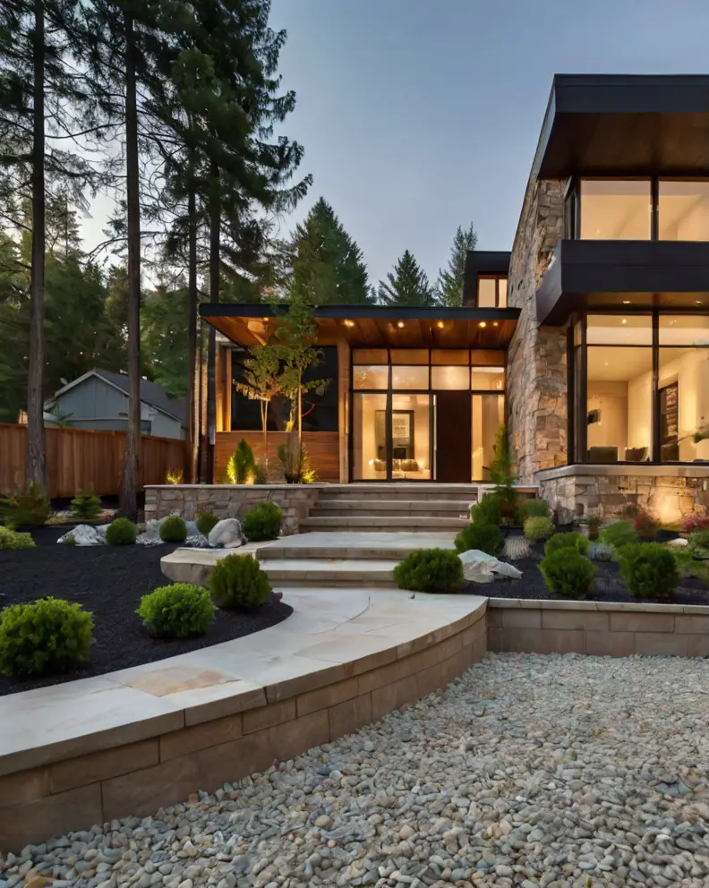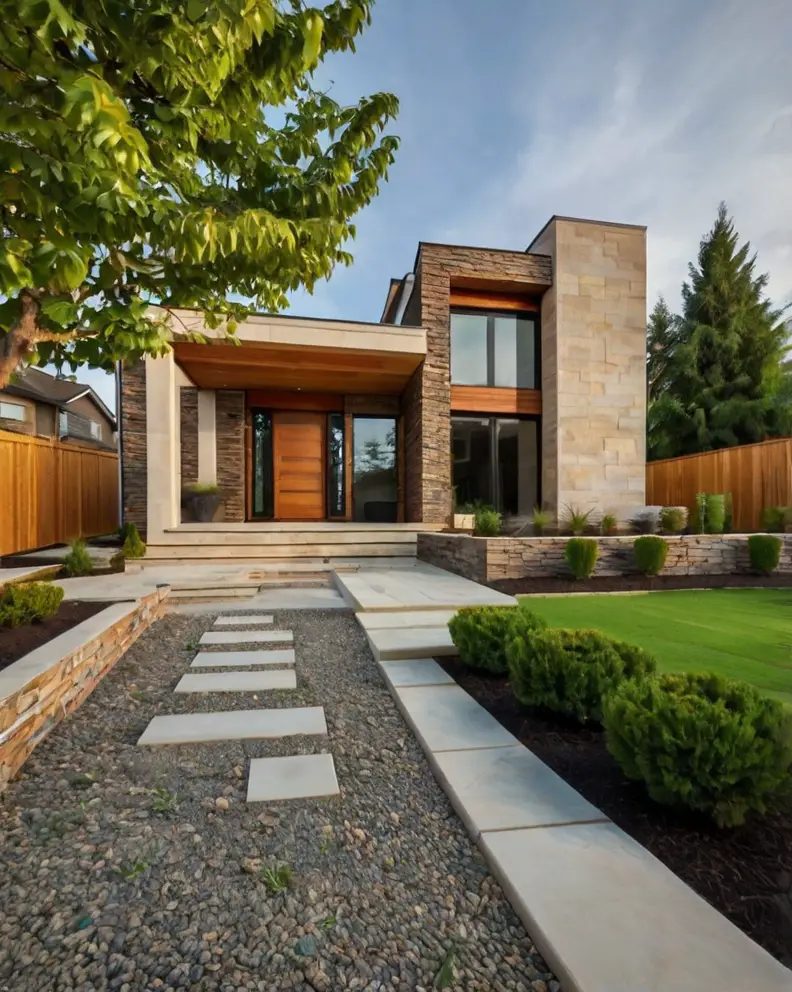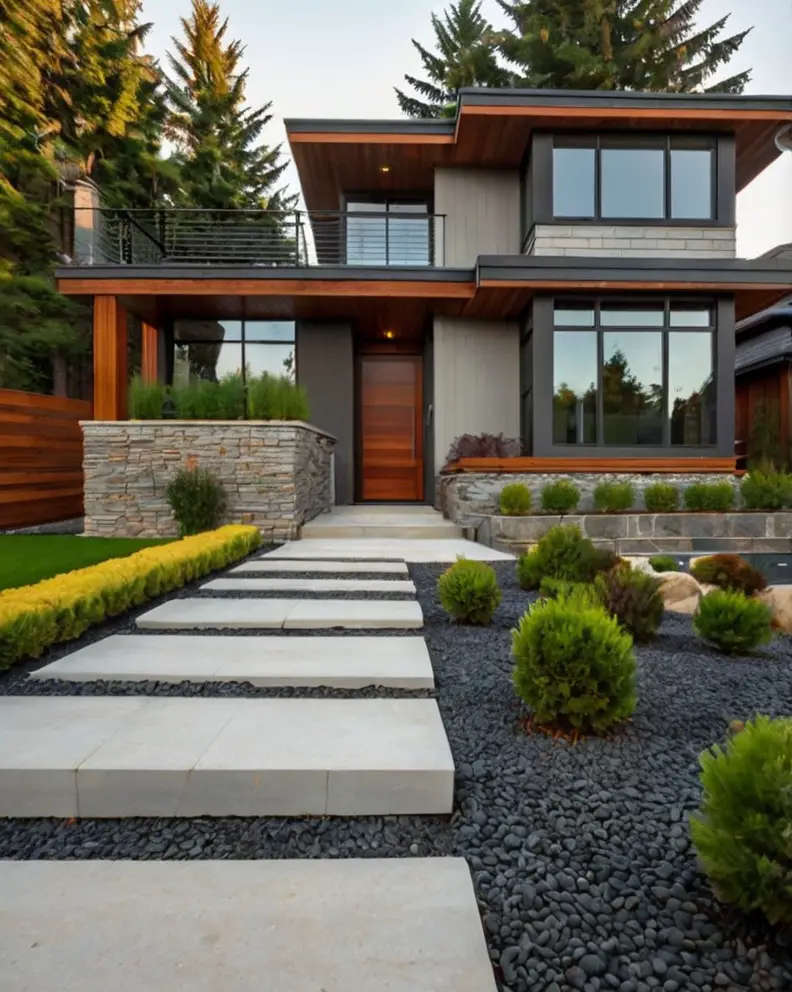 Decorative stones and gravel can add texture and visual interest to your front yard without the need for extensive upkeep.