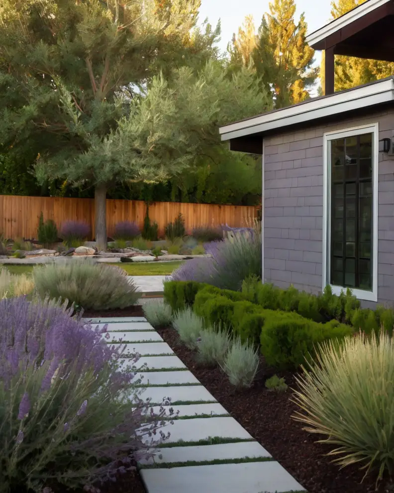 If you prefer to keep a grassy area, consider using low-maintenance grass varieties that require less mowing and watering.
