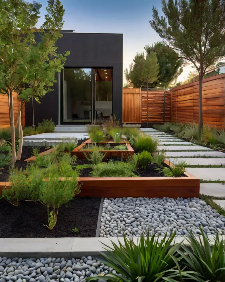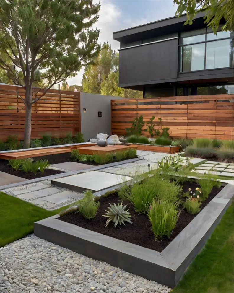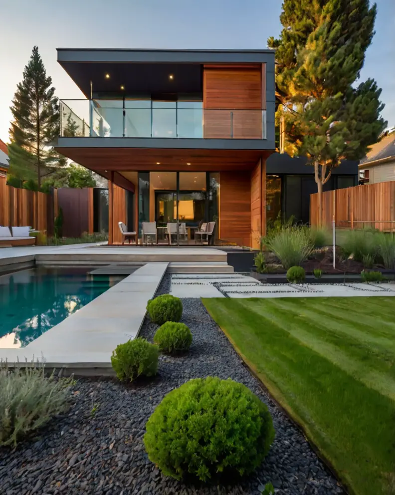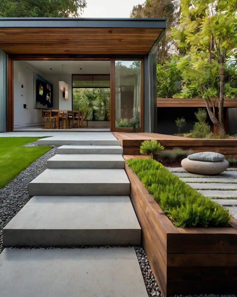 Modern landscaping embraces the use of contrasting materials to create visual interest. You can pair wood with concrete, metal with stone, or glass with greenery to achieve a bold yet harmonious look.