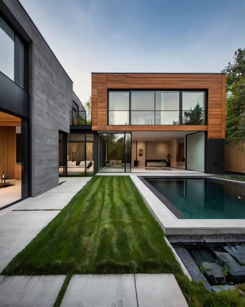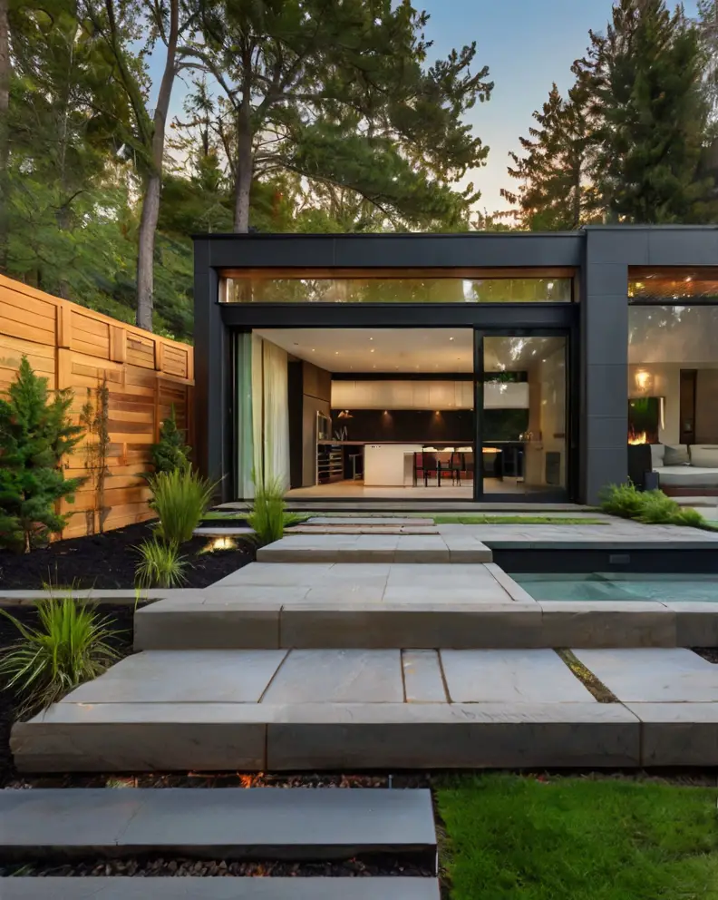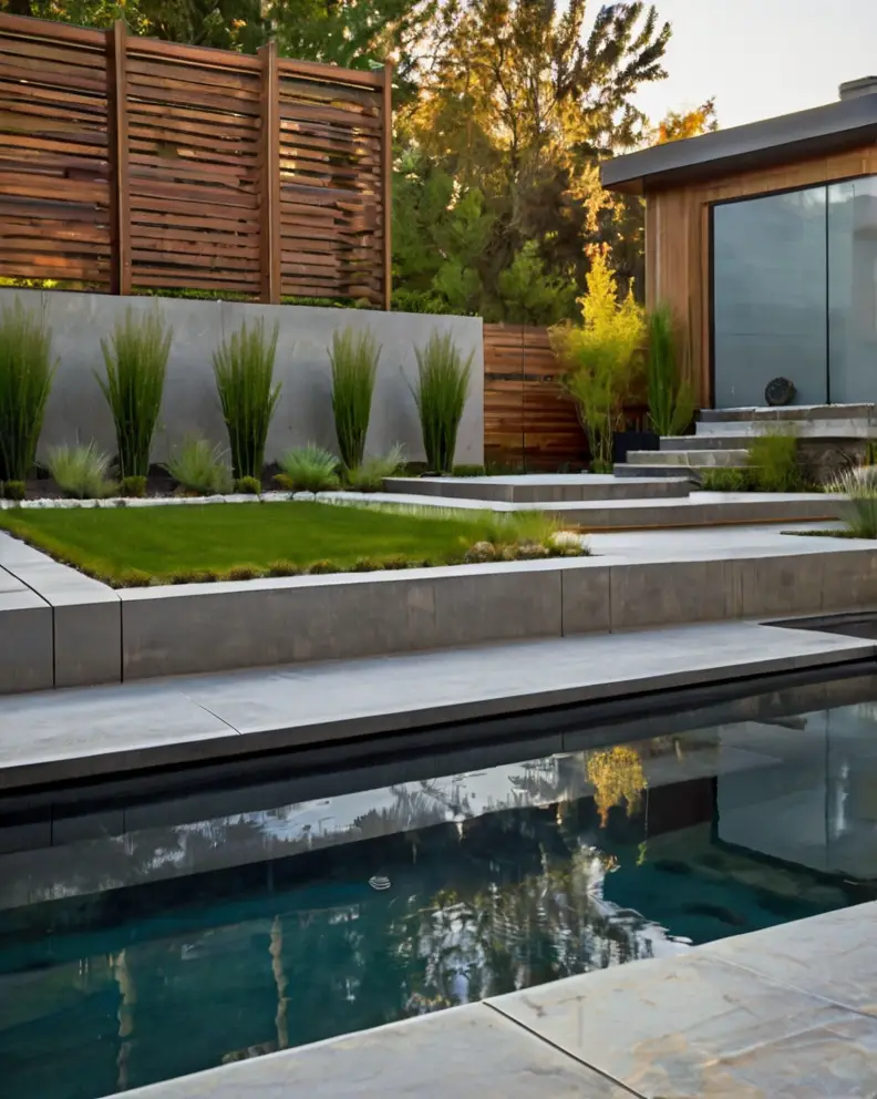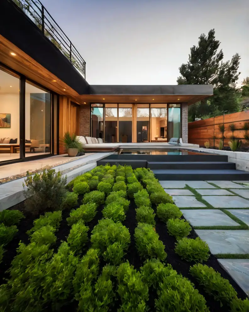 Modern landscaping embraces the use of contrasting materials to create visual interest. You can pair wood with concrete, metal with stone, or glass with greenery to achieve a bold yet harmonious look.