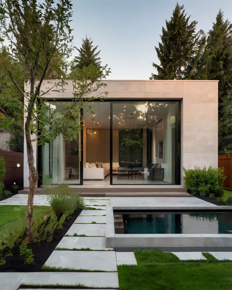 In a minimalist garden, less is more. Opt for simple geometrical designs, like rectangular pools, straight walkways, and neatly trimmed hedges.