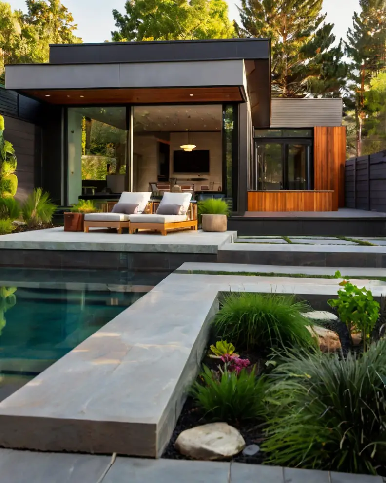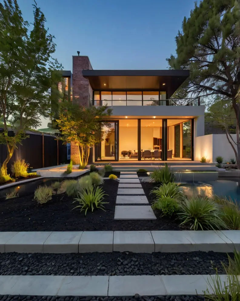 Modern landscaping often revolves around balancing hardscaping with nature. Integrating natural textures and colors is key.