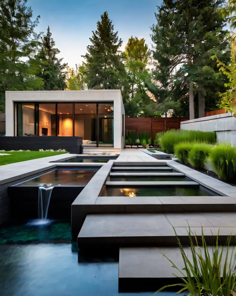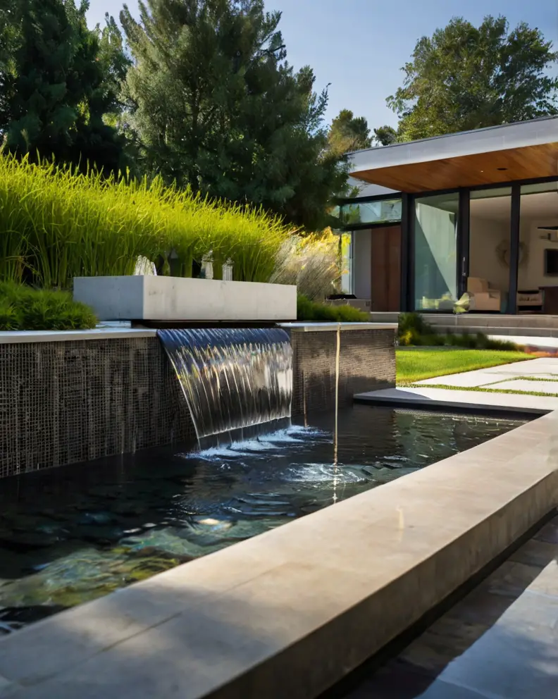 Water features add an element of tranquility to your backyard, and modern designs favor sleek, understated installations.
