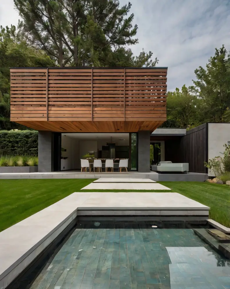 Opt for weather-resistant materials, such as teak, concrete, and metal, for a sleek and contemporary look.