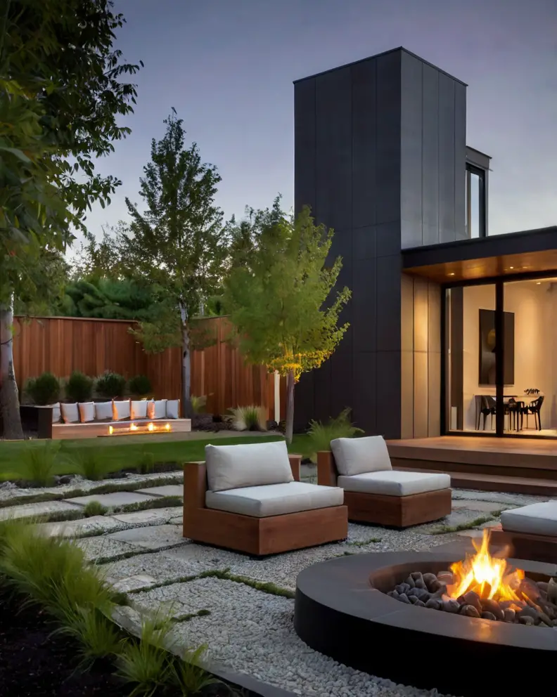Modern backyards often include fire features that provide warmth and ambiance, extending the usability of the outdoor space well into the cooler months.