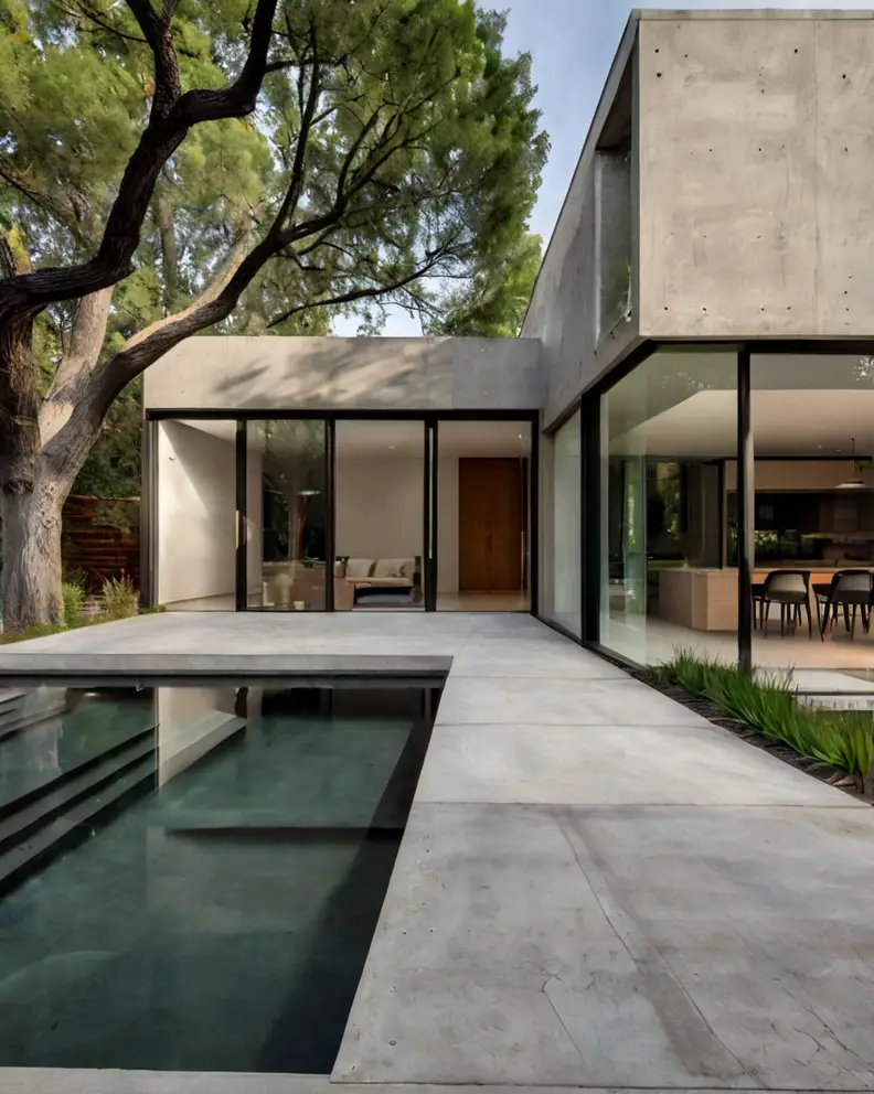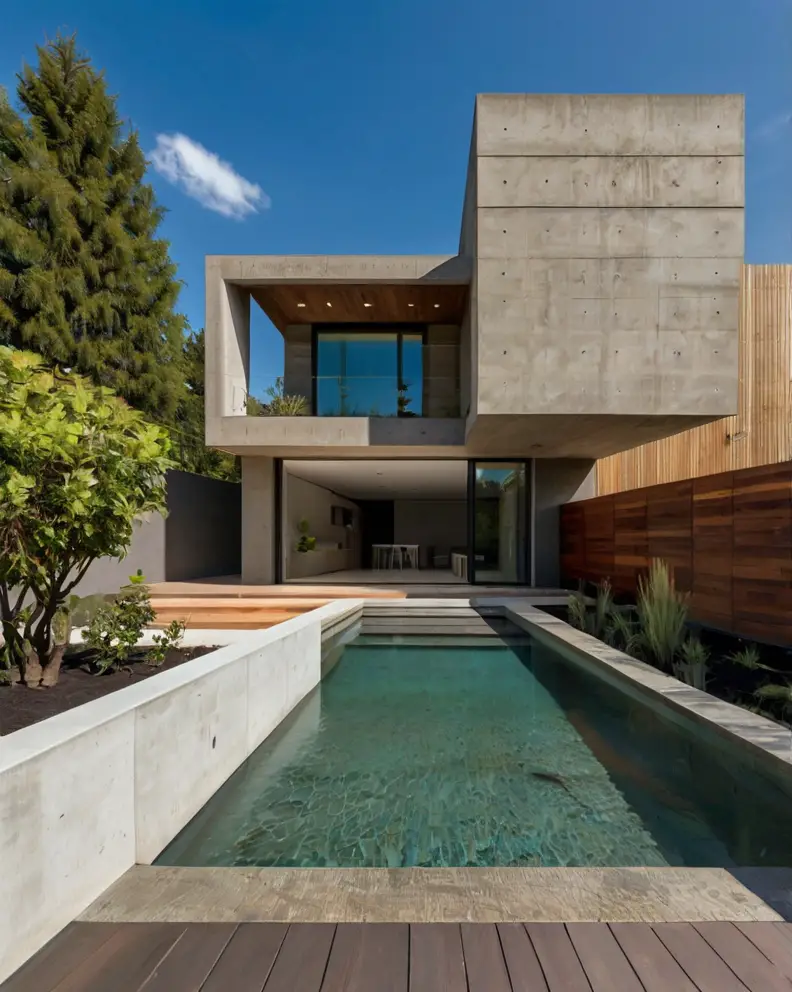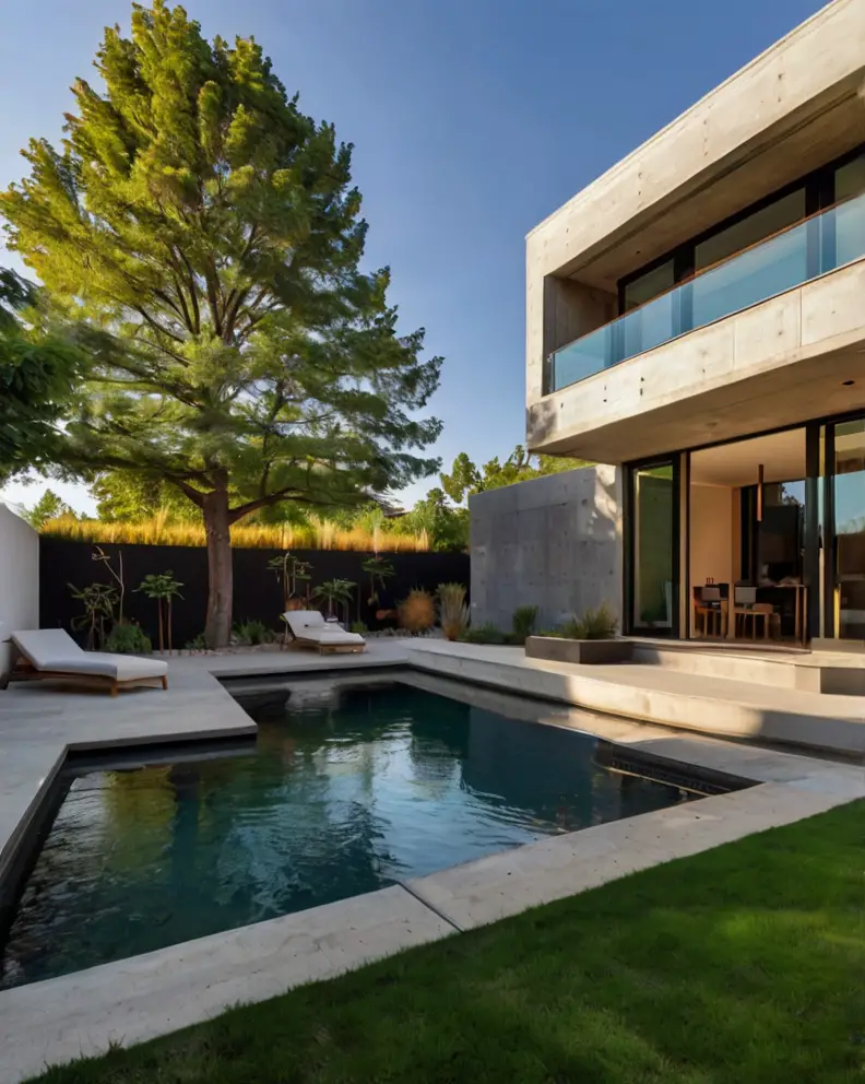 Concrete, stone, or wooden decks often pair well with minimalist aesthetics, creating a sleek, contemporary vibe.