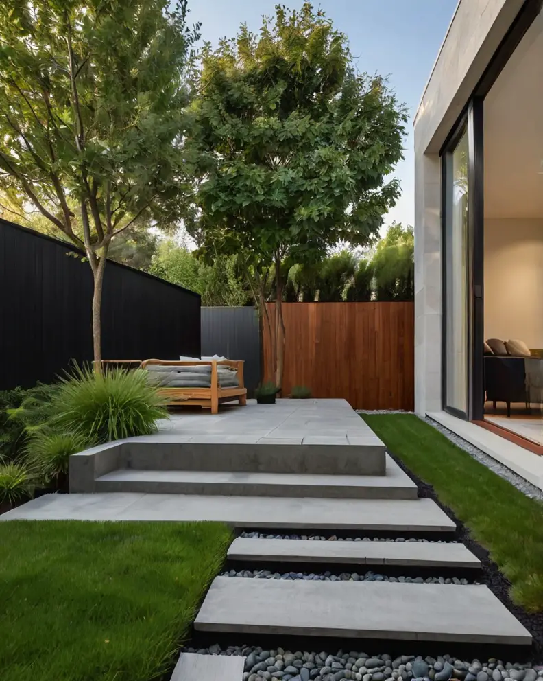 If your backyard has varied topography, modern landscaping embraces this by creating multi-level spaces. By using terraces, raised decks, and steps, you can add visual depth and make better use of the space. Use natural materials like stone or wood to ensure the levels blend seamlessly with the environment.