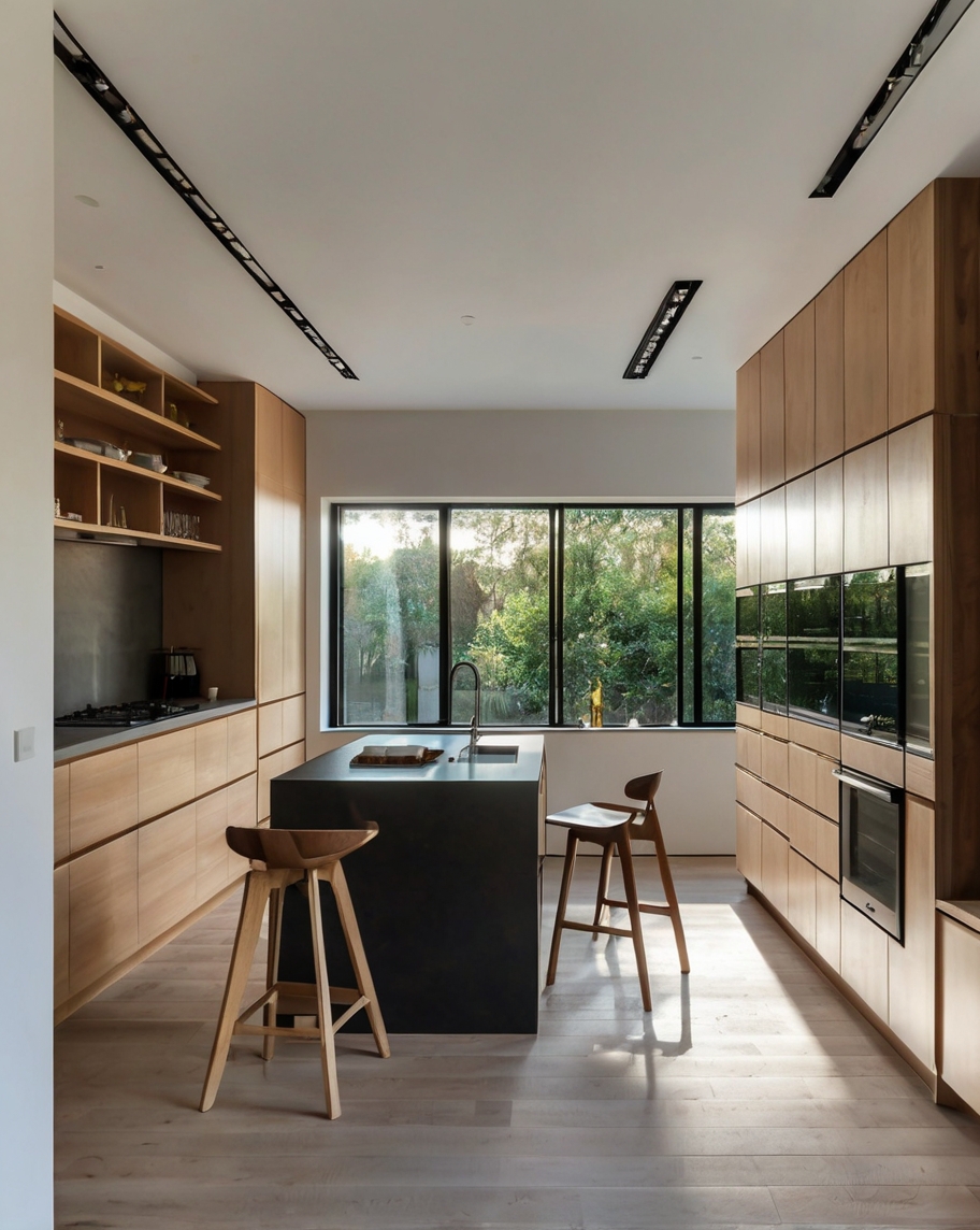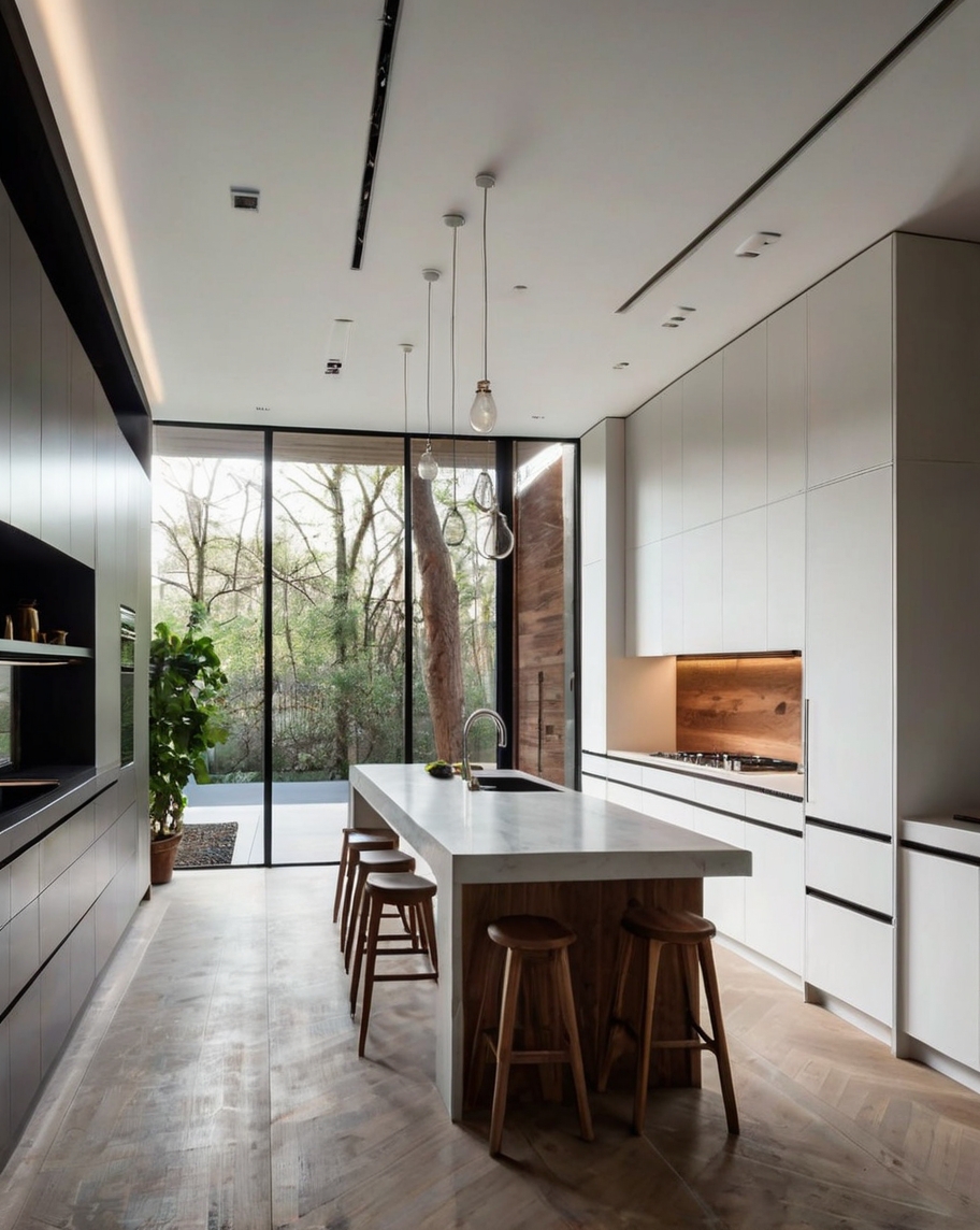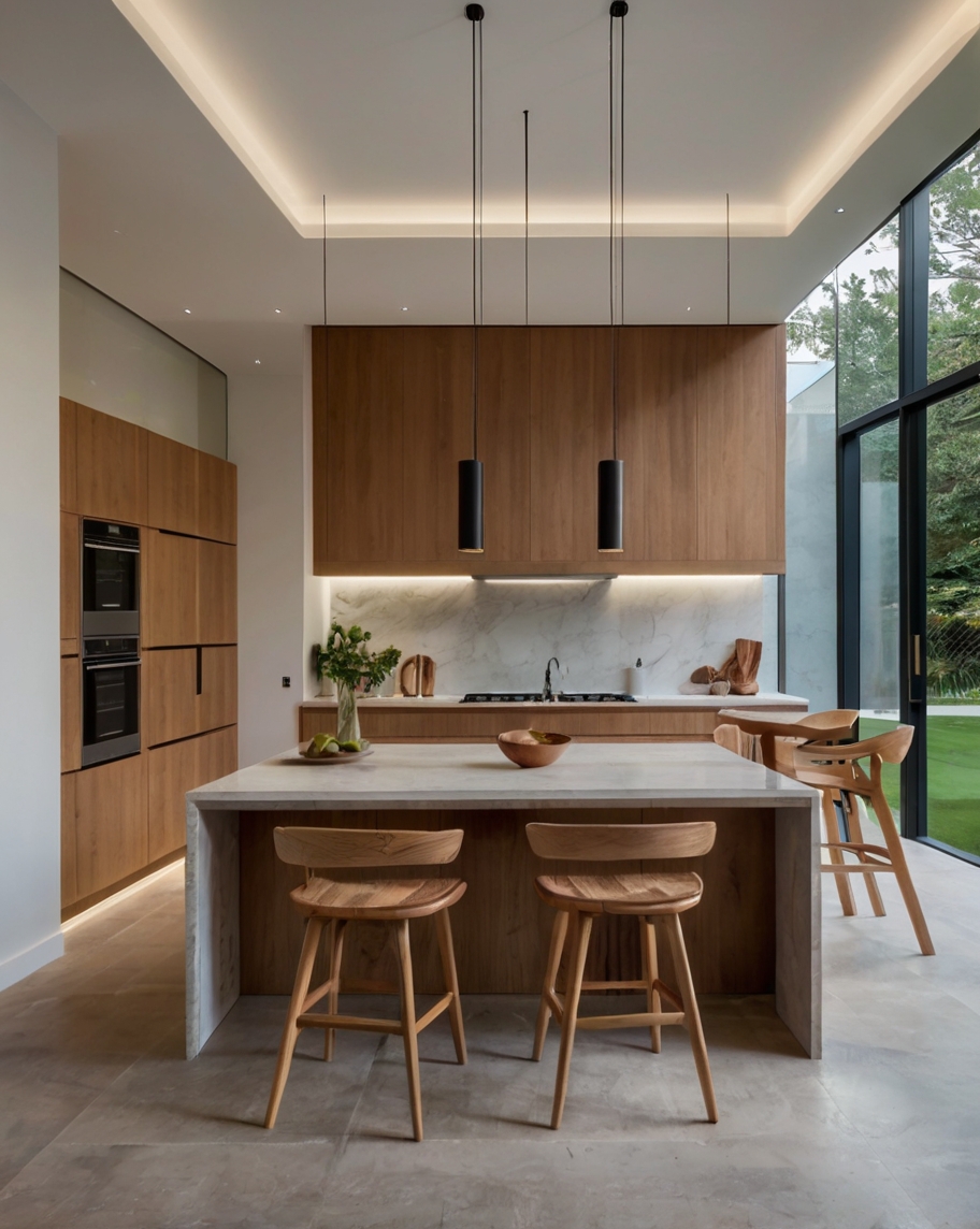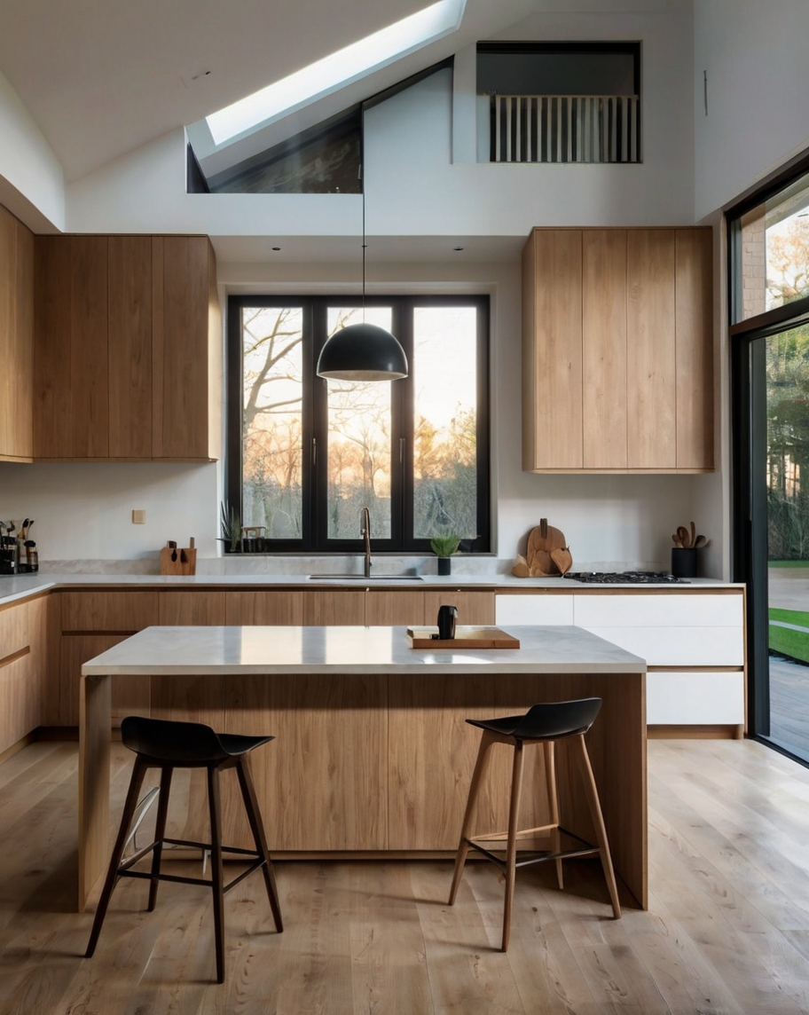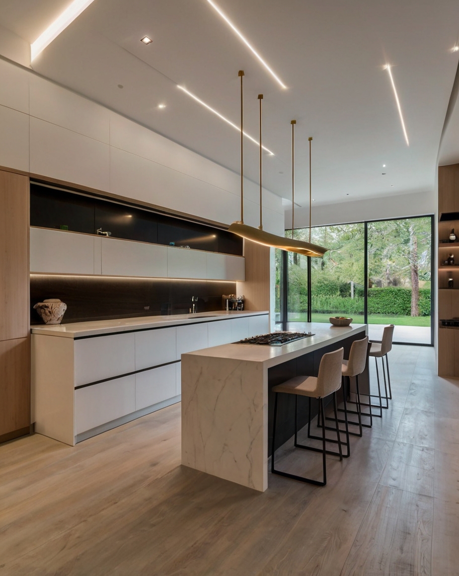 Additionally, it allows for a variety of design elements, such as open shelving, breakfast bars, or additional seating.