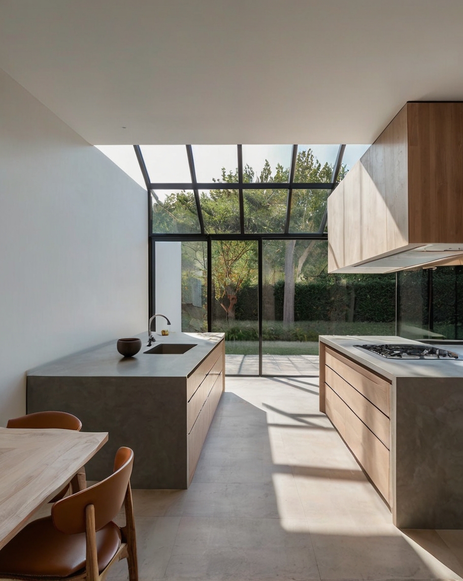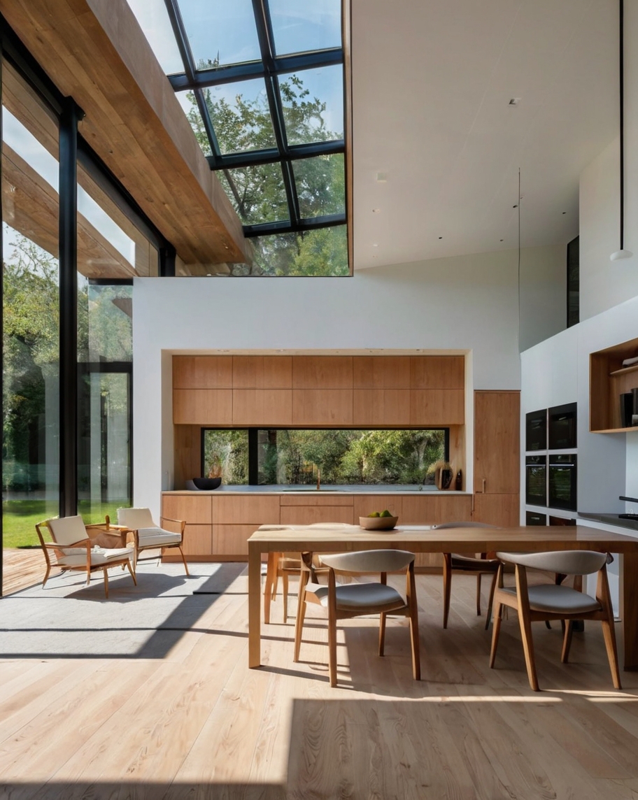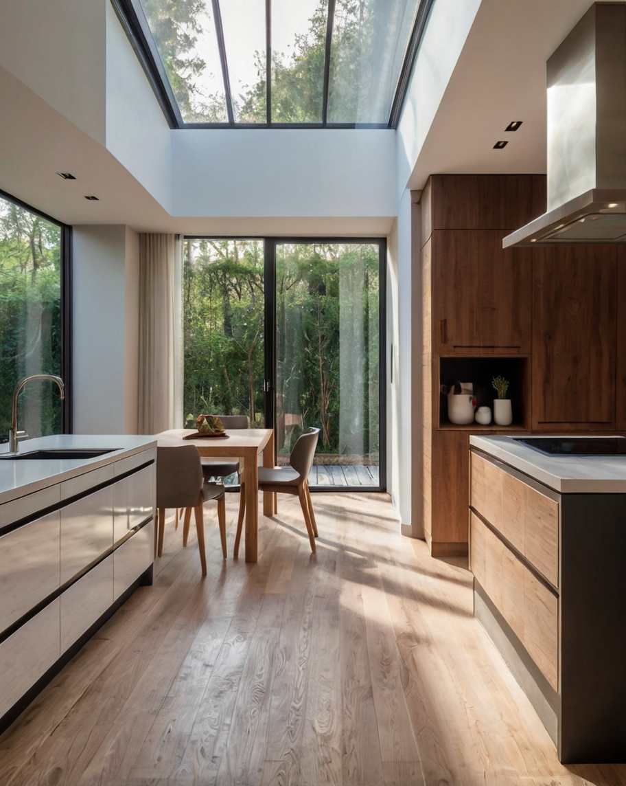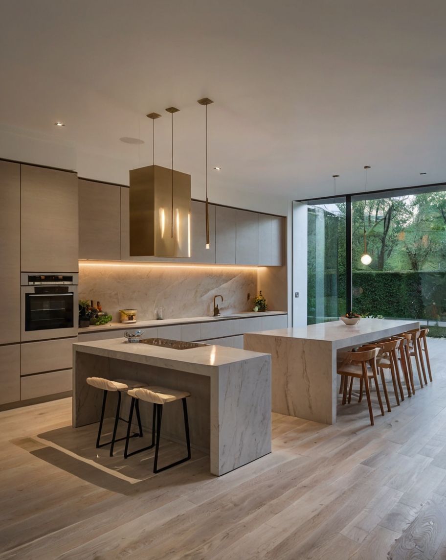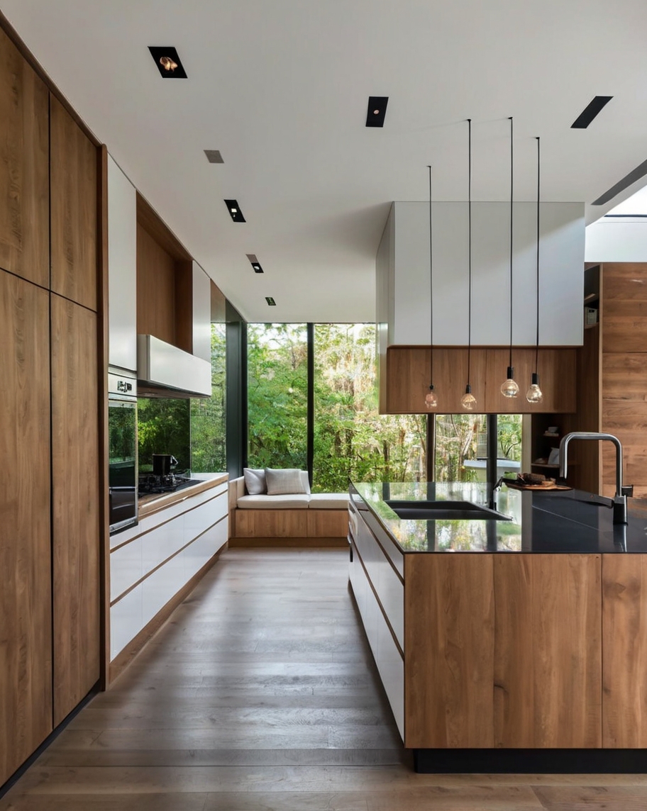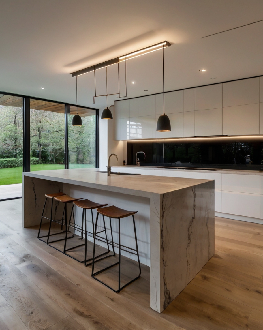 Additionally, it allows for a variety of design elements, such as open shelving, breakfast bars, or additional seating.