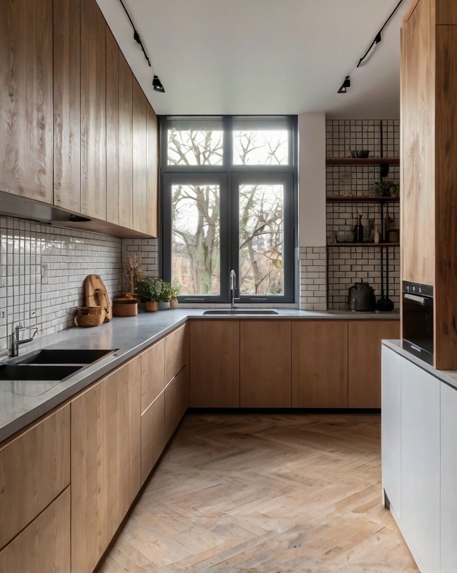 Choose colors and materials that complement the size of your kitchen. Lighter colors can make a smaller U-shaped kitchen feel more spacious, while darker tones can add warmth and coziness to larger spaces. Durable, easy-to-clean materials are ideal for countertops and backsplashes.